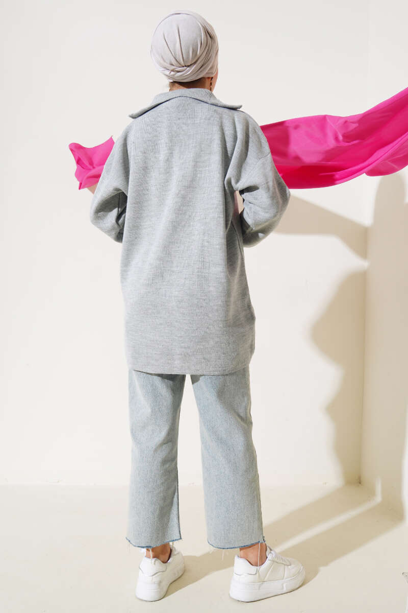 Basic Oversize Triko Tunik Füme