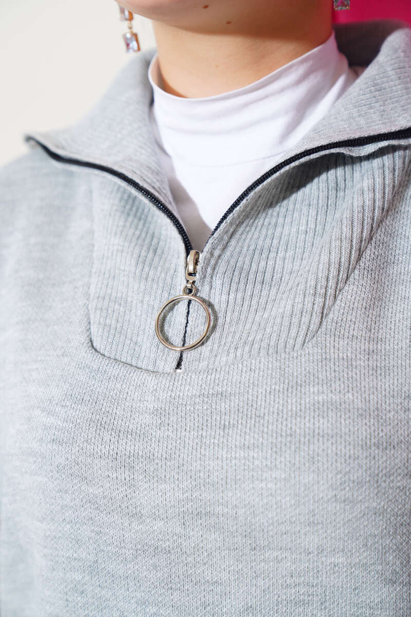 Yarım Fermuarlı Loyşa Şeritli İkili Takım Füme