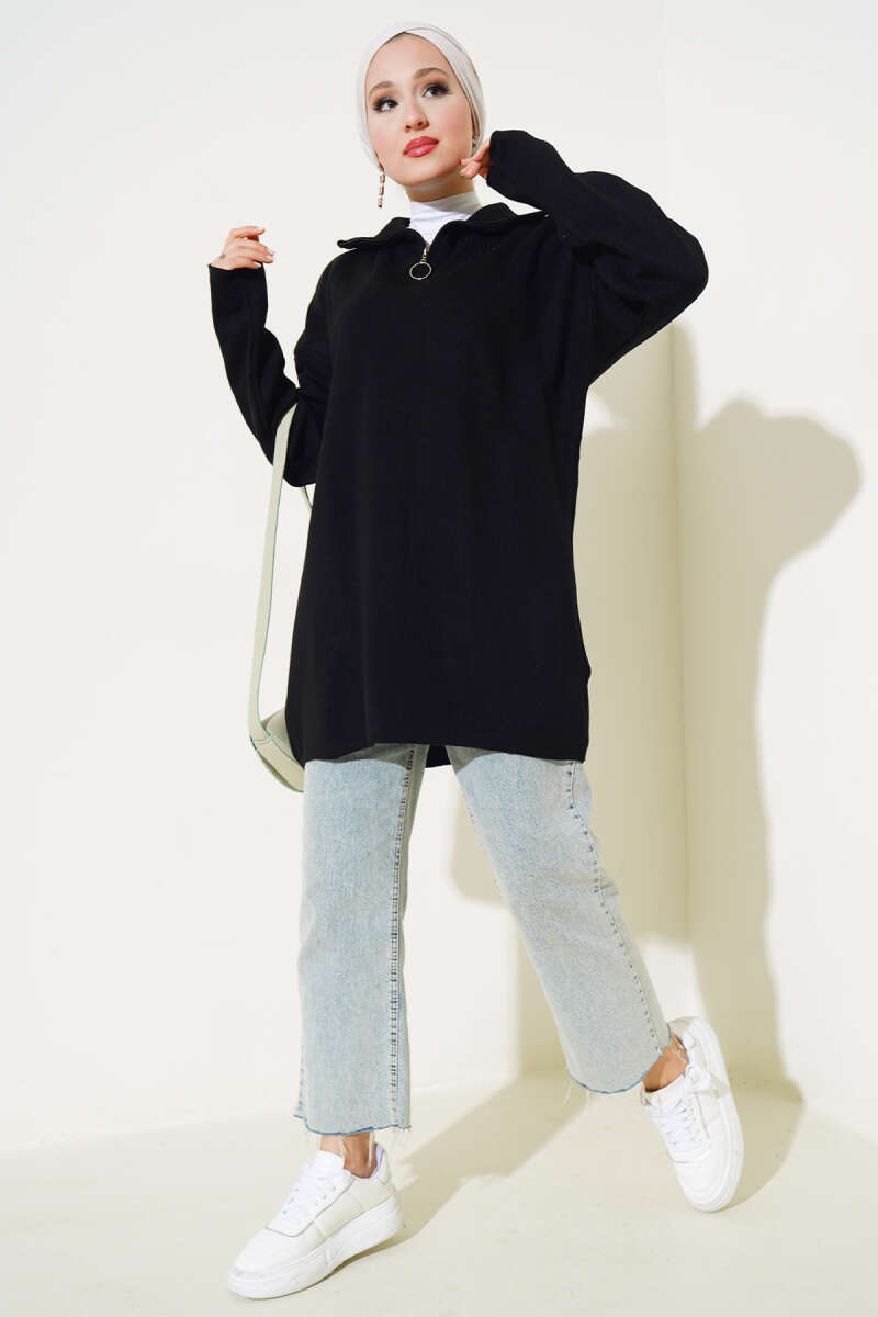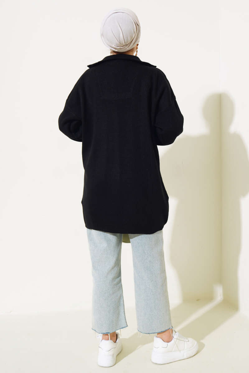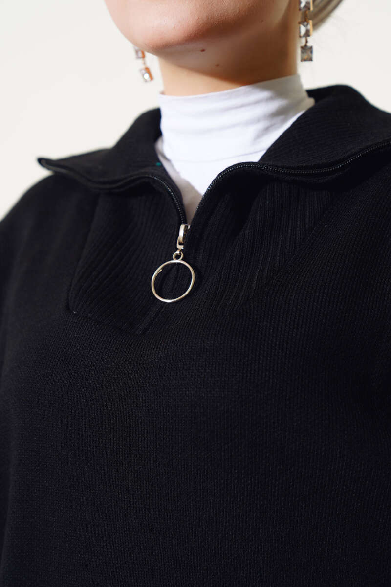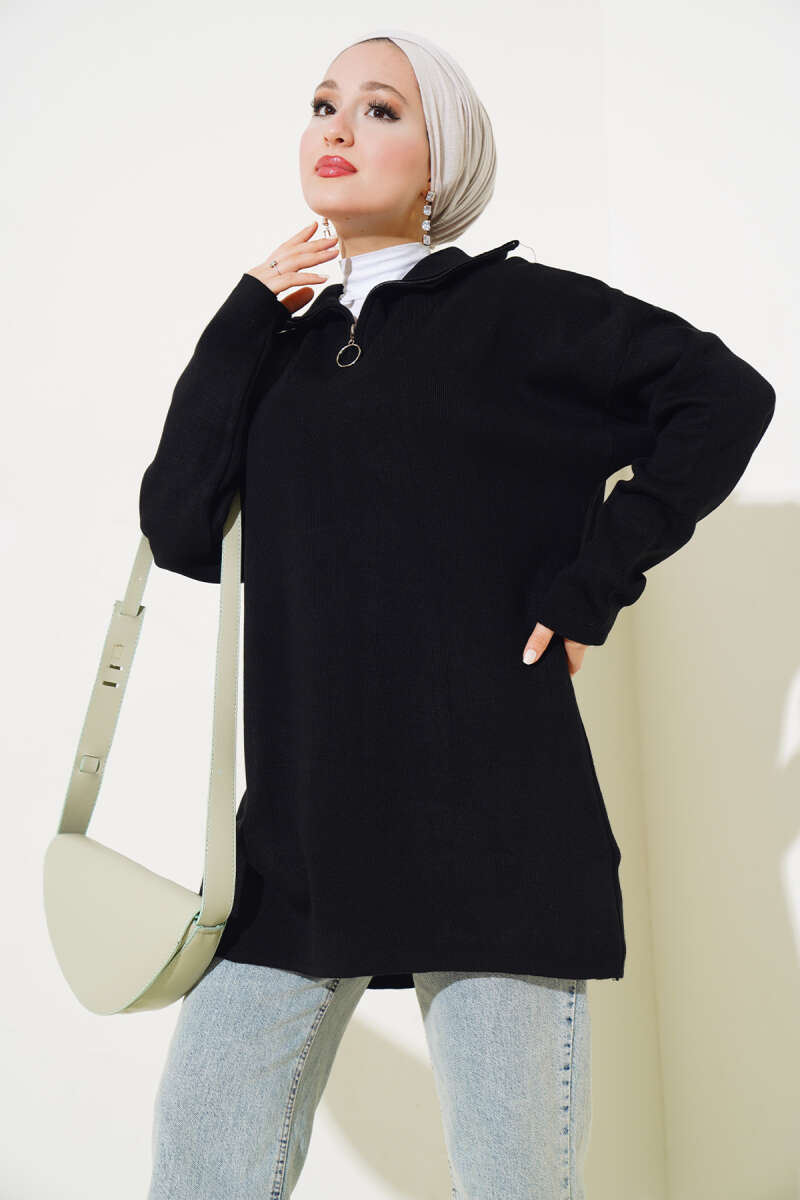 Yatay Çizgi Detaylı Basic Triko Tunik Siyah