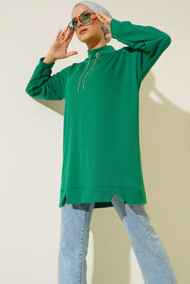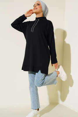 Yeni sezon tuniğimizi üzerinizden hiç çıkarmak istemeyeceksiniz. Tuniğimiz dik yaka model olup düşük omuzludur. Kolları geniş tuniğimizin bilekleri esnektir. Etek uçları yırtmaçlıdır. Yakasında bulunan zincir süslemesi tuniğimize hareket katmaktadır. Birden çok renk seçeneği mevcuttur. Kombinlerinizde sıklıkla tercih edeceğiniz tuniğimiz sizleri beklemekte.