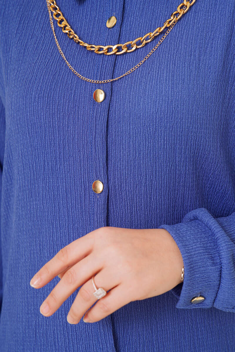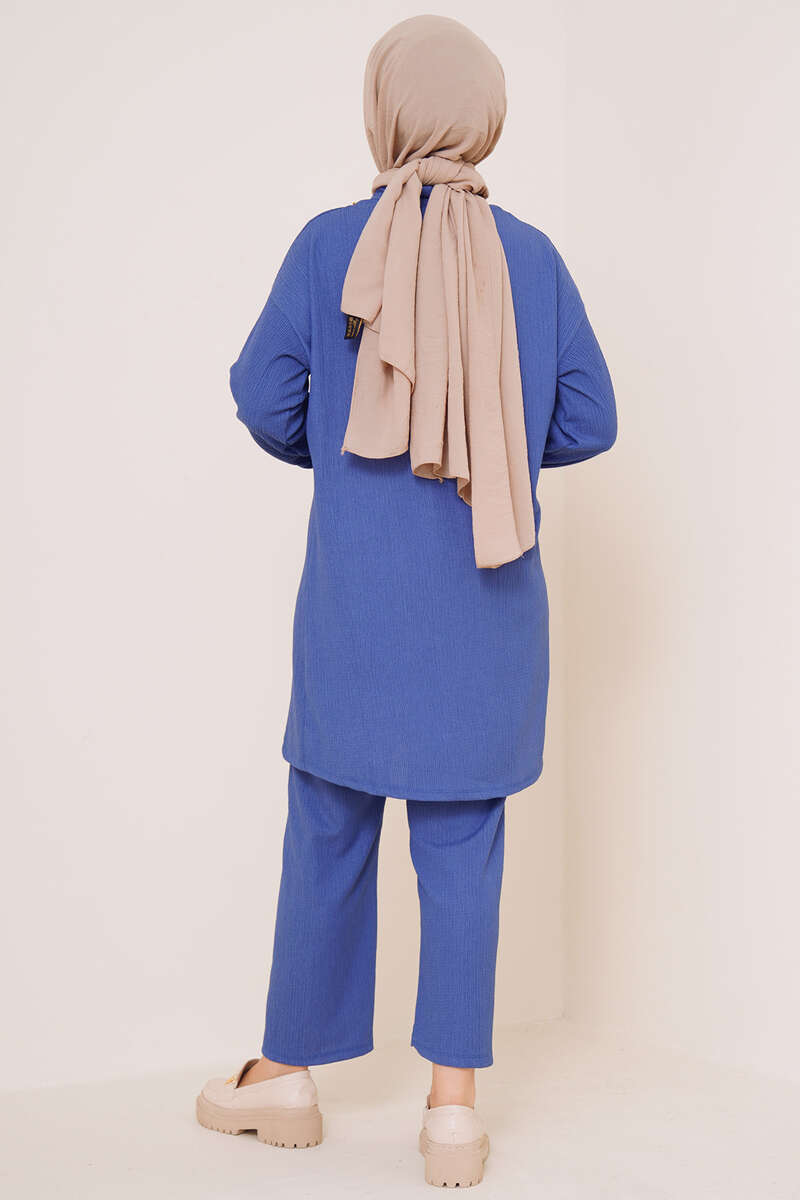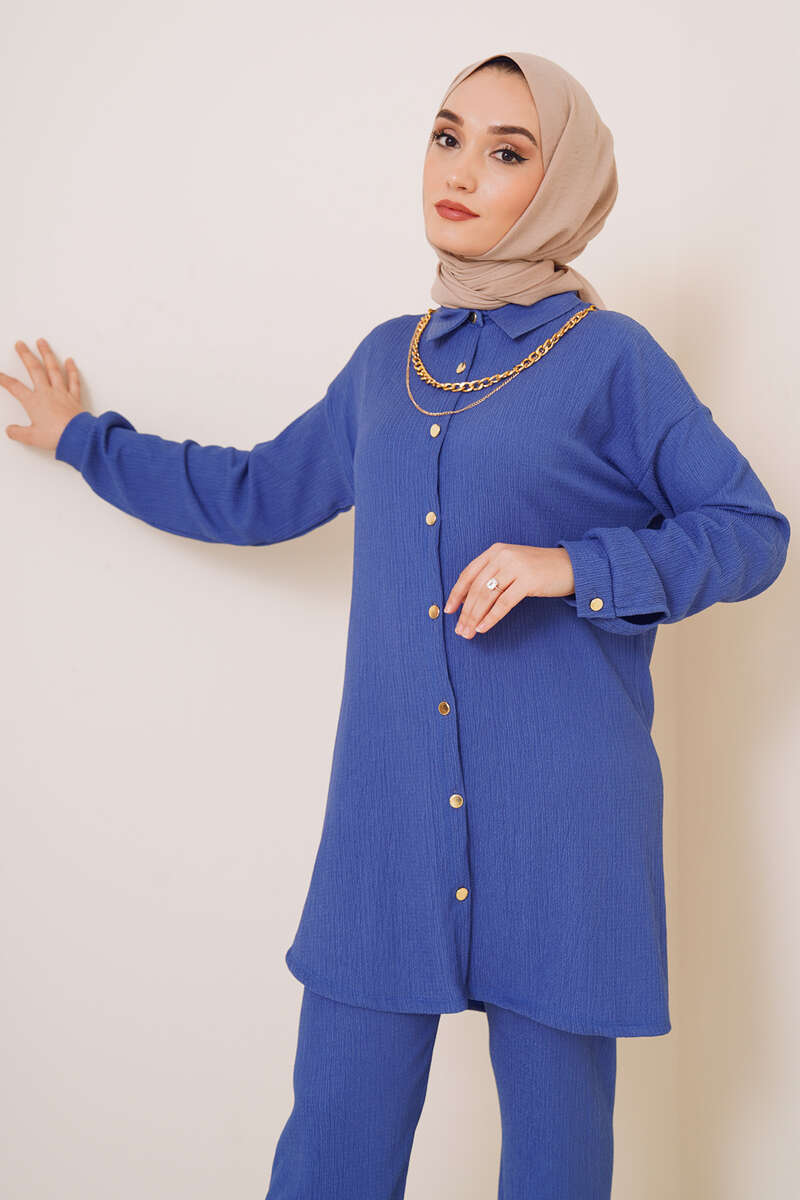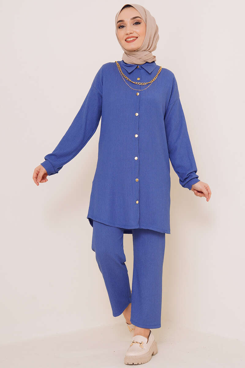 Yakası Zincirli İkili Bürümcük Takım İndigo