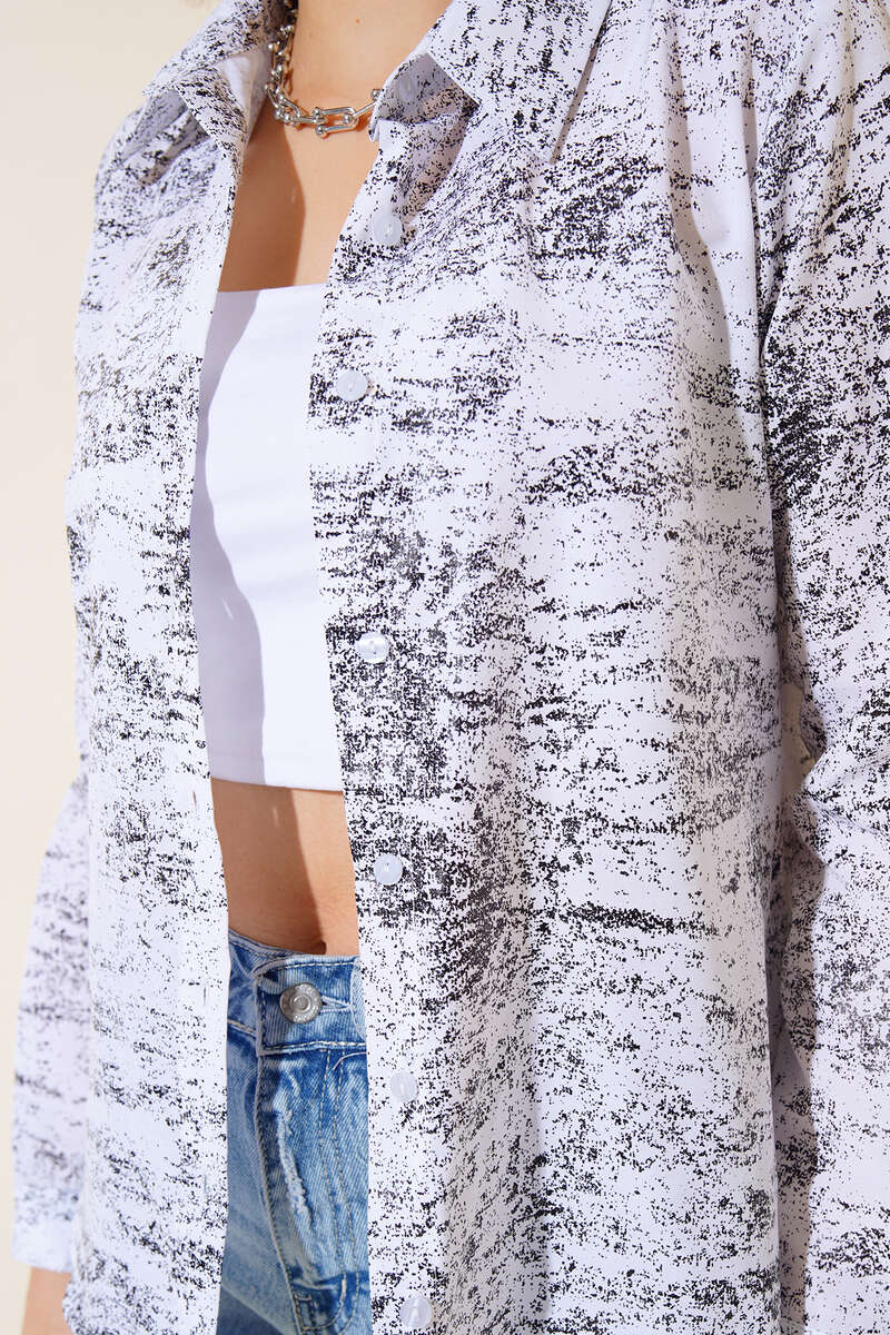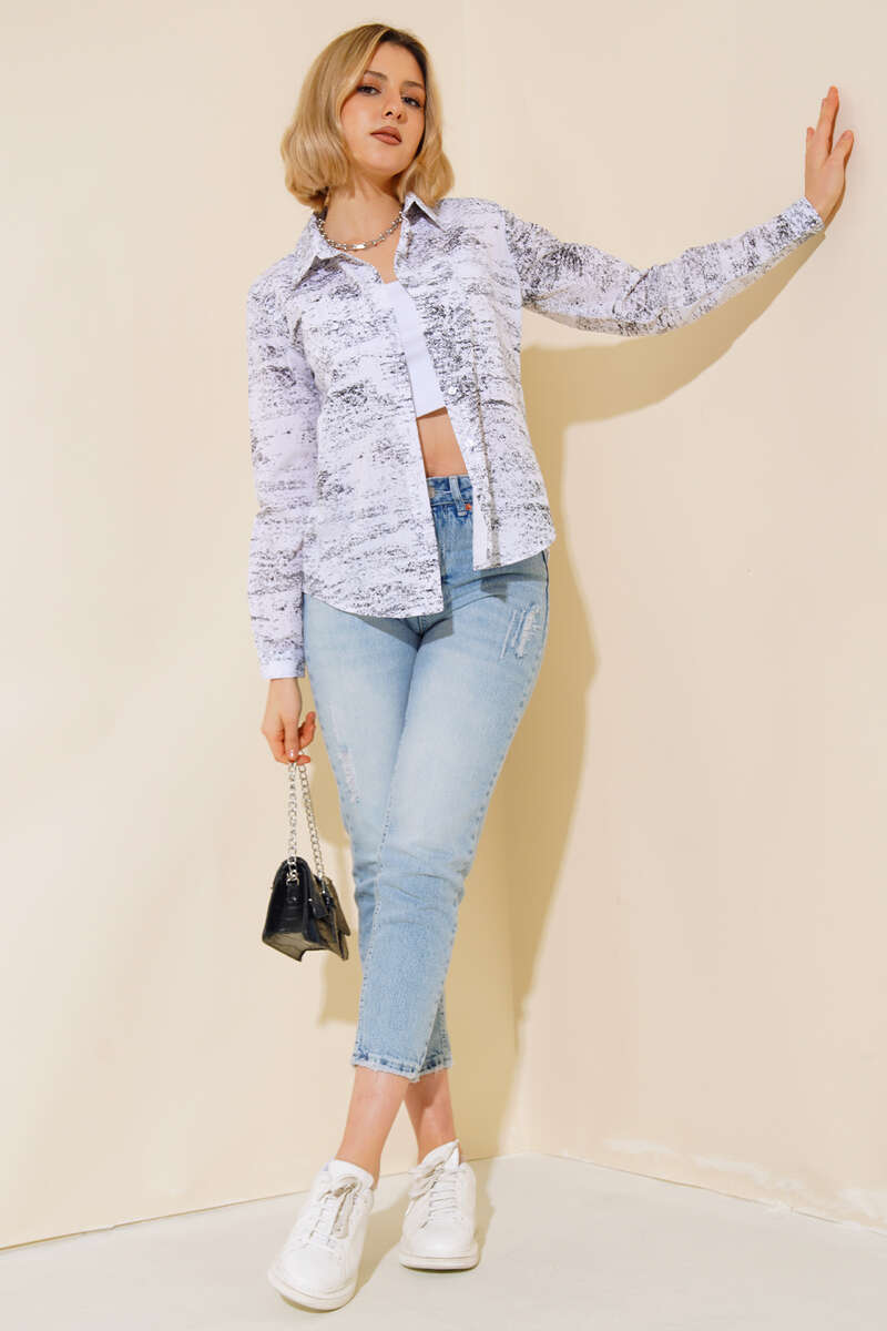 Yaldız Baskılı Gömlek Siyah