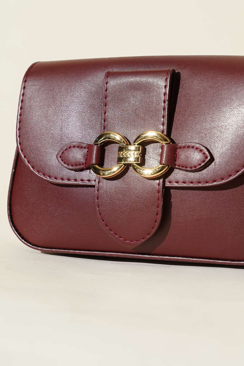 Çıtçıtlı Fularlı Kol Çanta Bordo