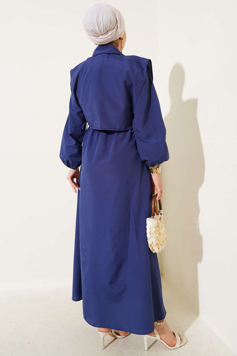 Omuz Pelerinli Taş Detaylı Abiye Elbise Lacivert