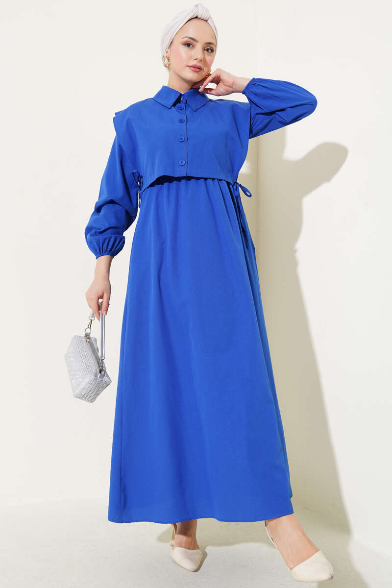 Çiçek Motifli Tül Pelerinli Abiye Elbise Bebe Mavi
