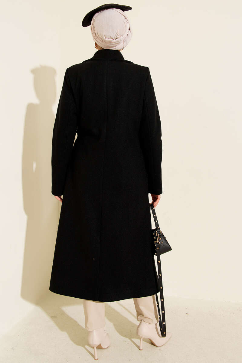 Geniş Yaka Kürklü Uzun Mont Siyah