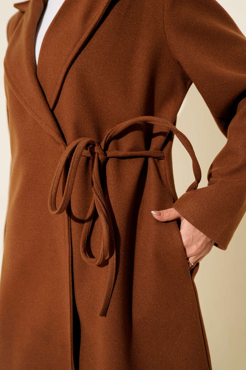 Yan Bağcıklı Kaşe Kaban Bej