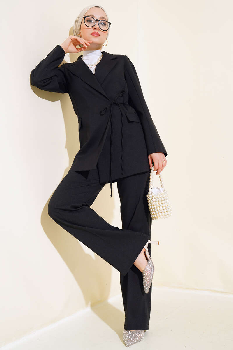 Yan Bağlamalı Ceketli İkili Takım Siyah