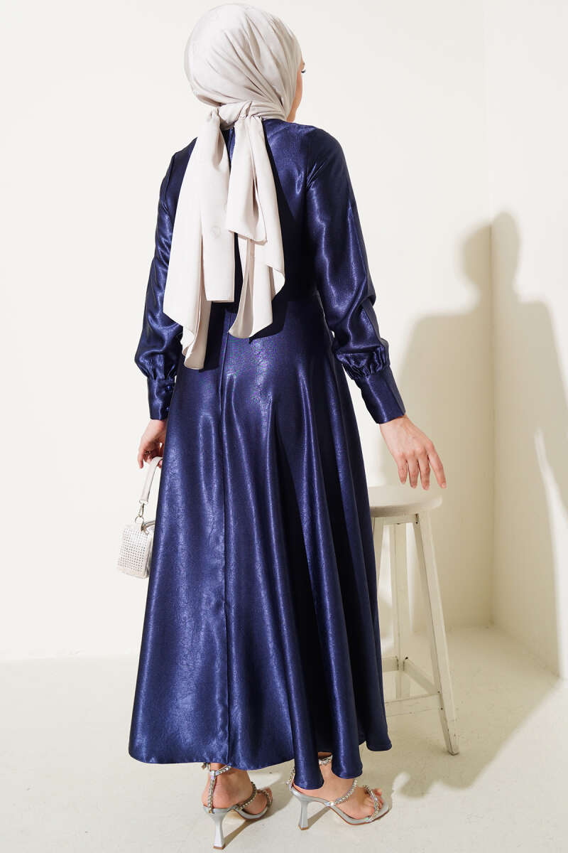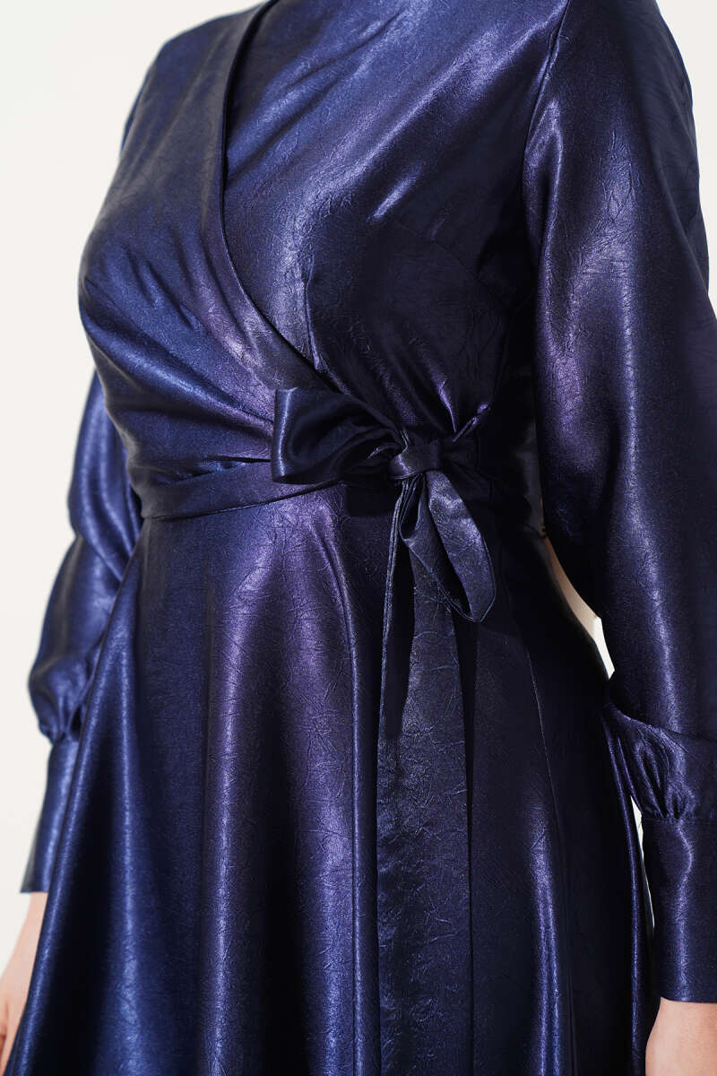 Duble Kol İp Kuşaklı Loyşa Elbise İndigo