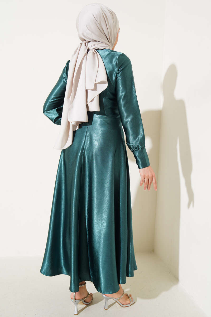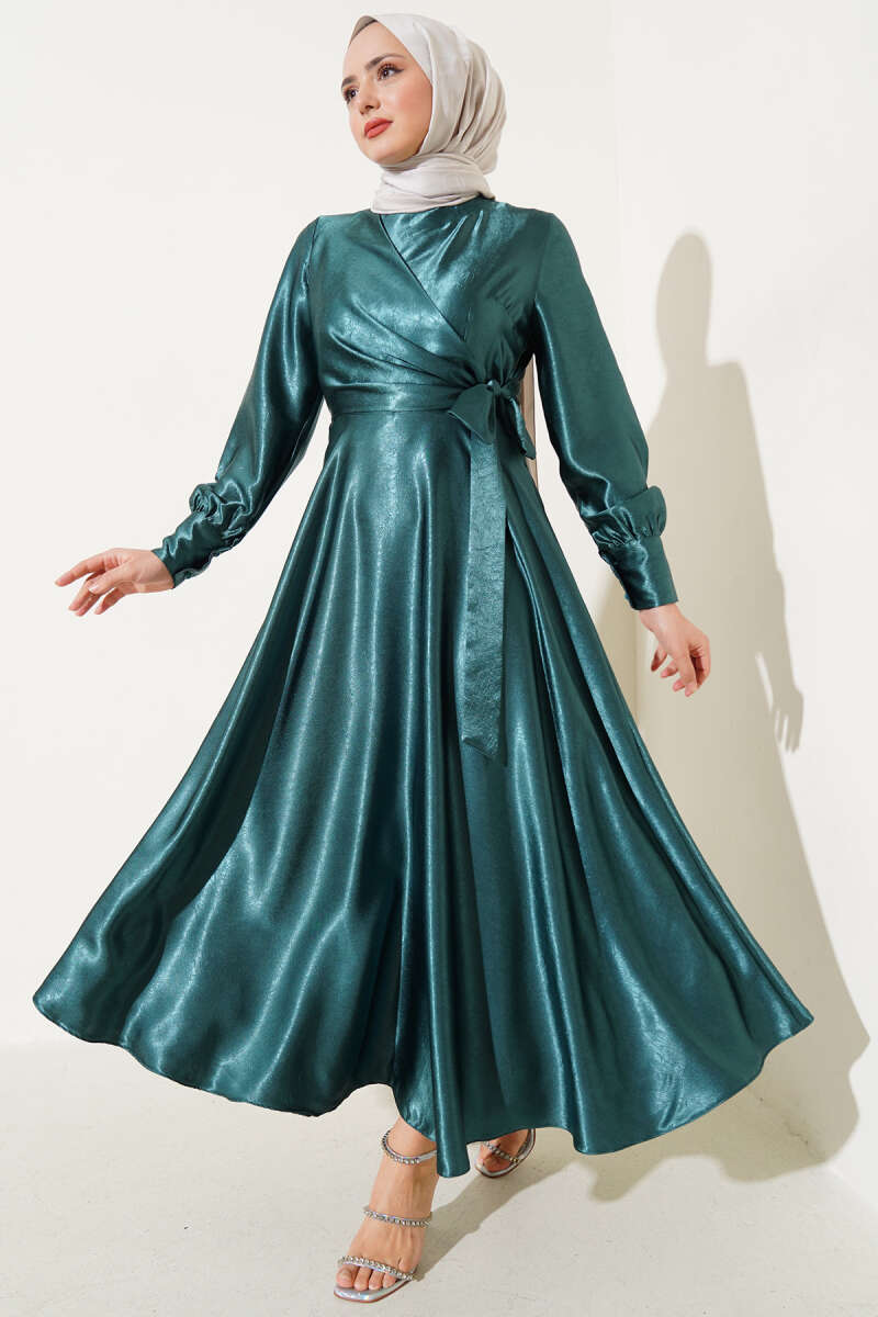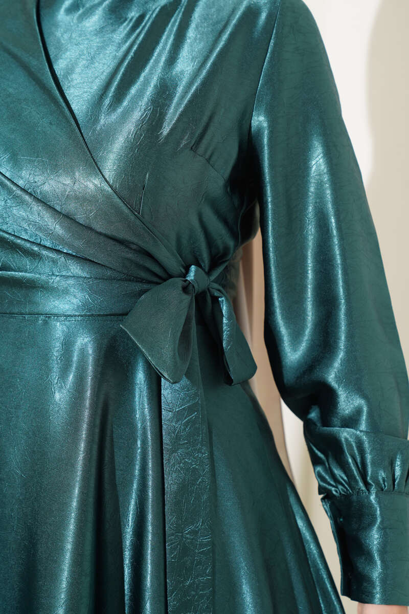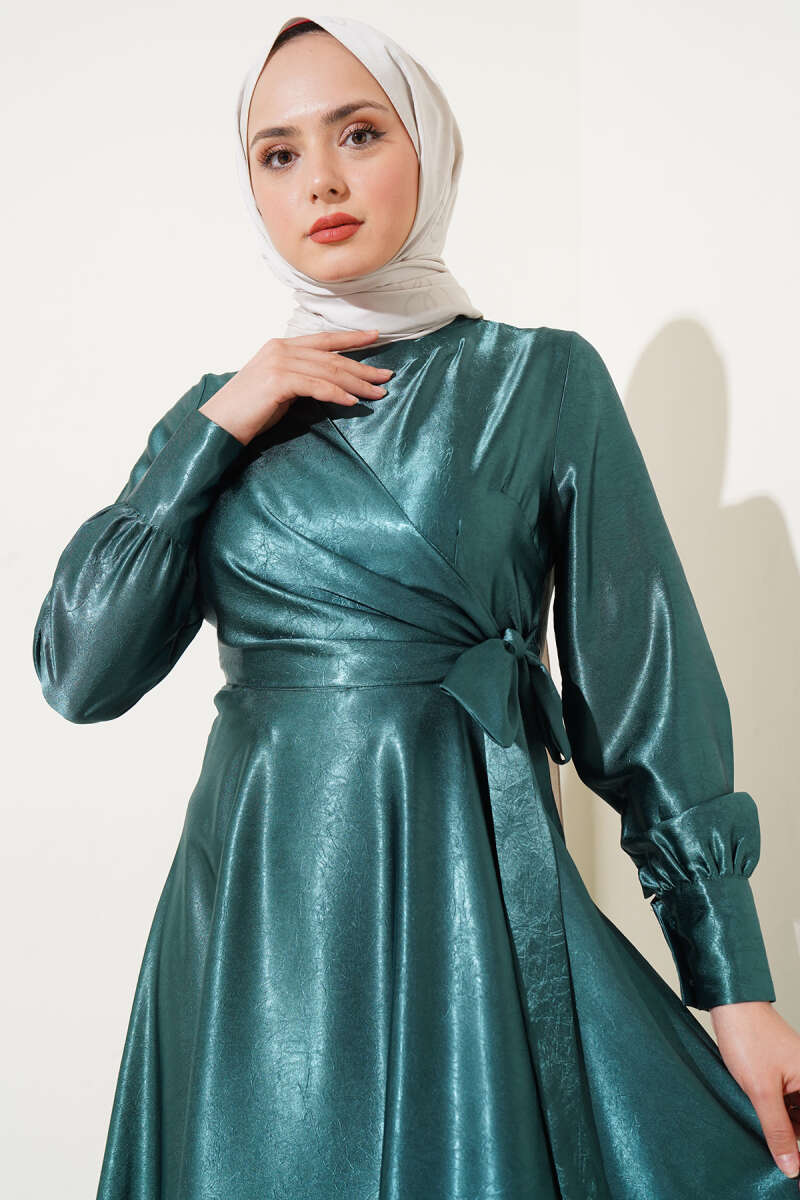 Yan Bağlamalı Jakar Elbise Zümrüt