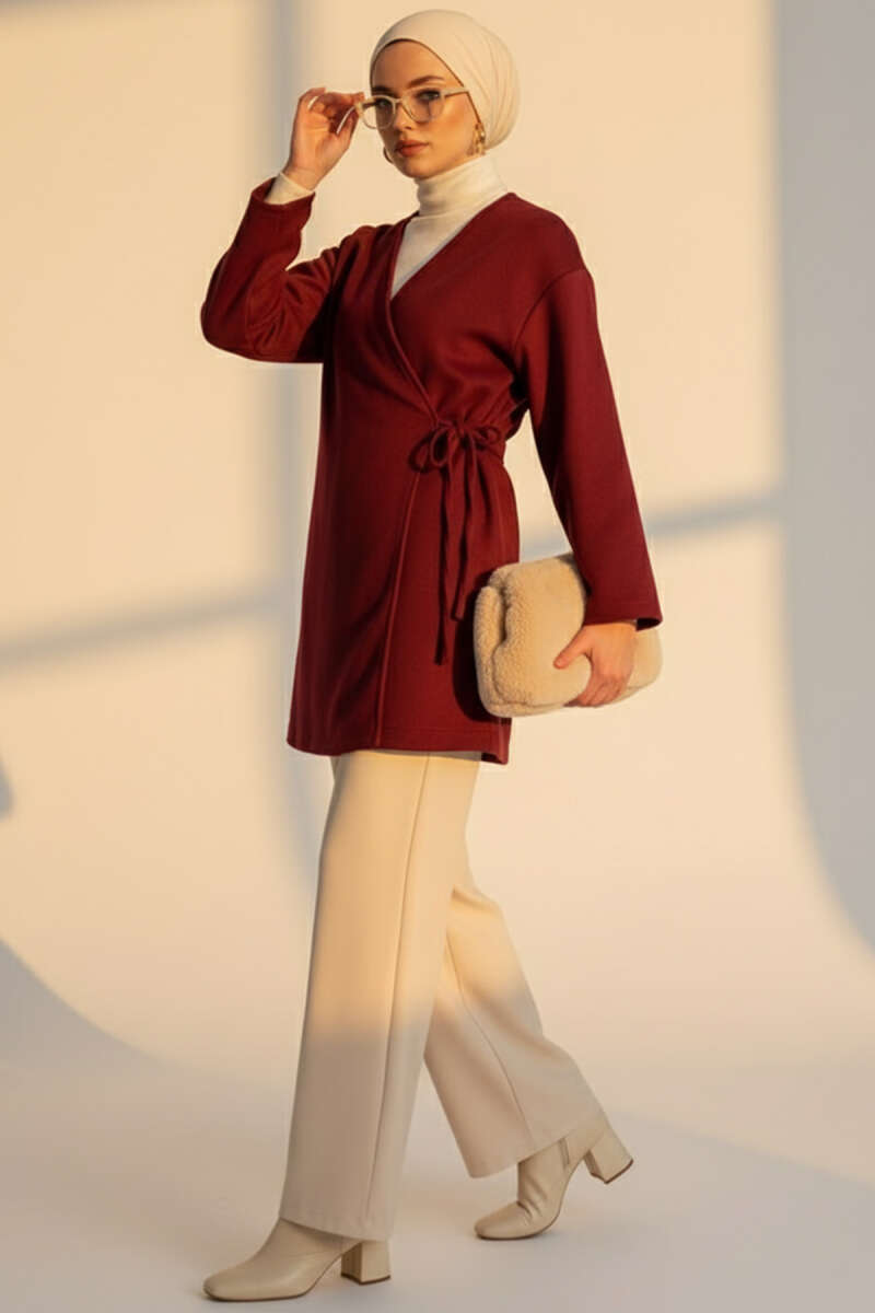 Tek Düğmeli Kemerli Sakallı Ceket Mor