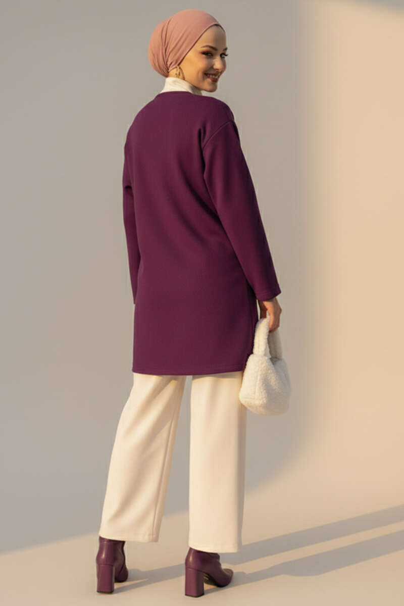 Tek Düğmeli Kemerli Sakallı Ceket Mor