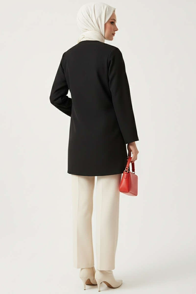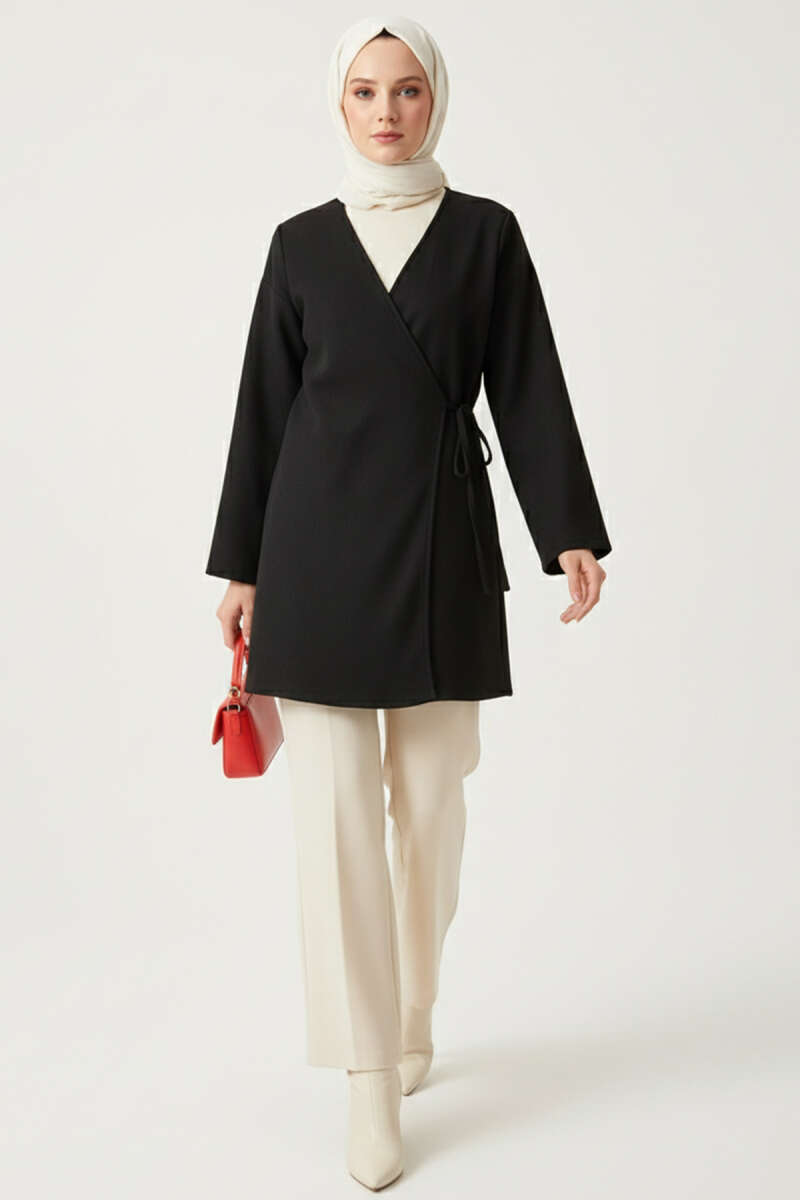 Yakası Fırfırlı Bürümcük Kimono Siyah
