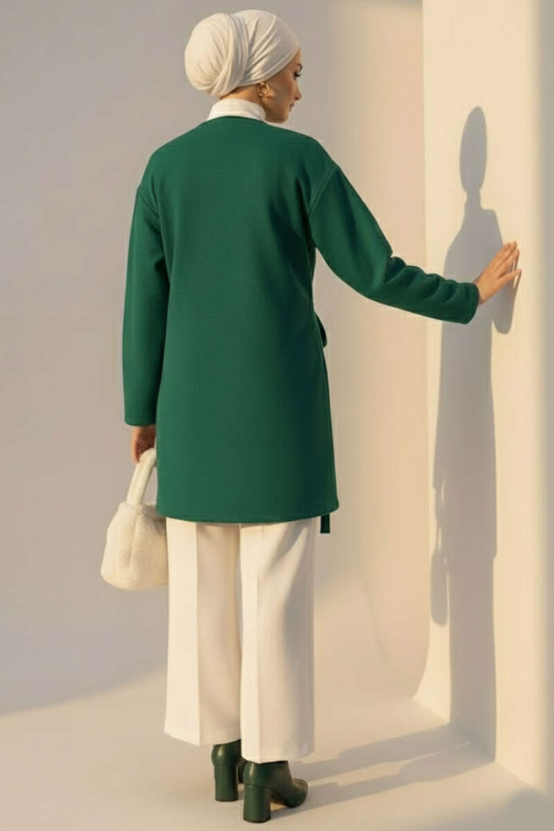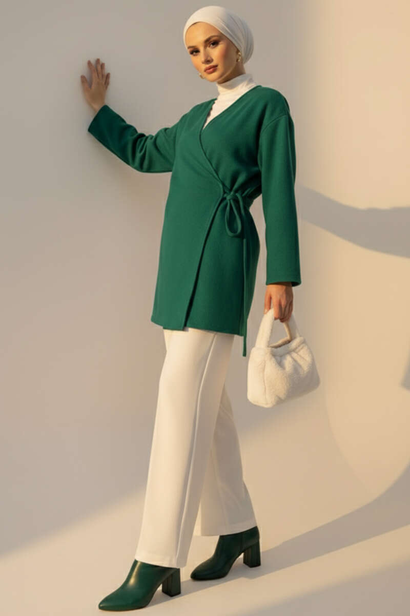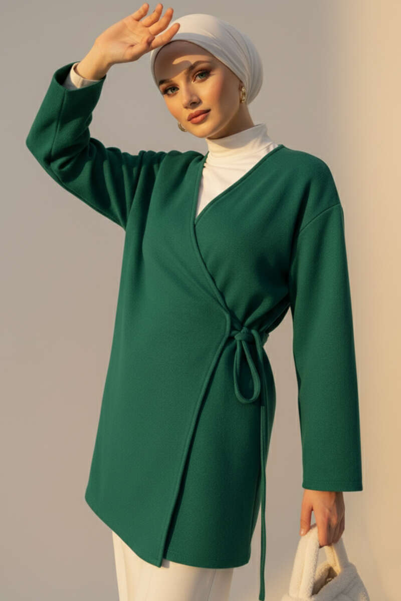 Gömlek Yaka İp Kuşaklı Deri Ceket Haki
