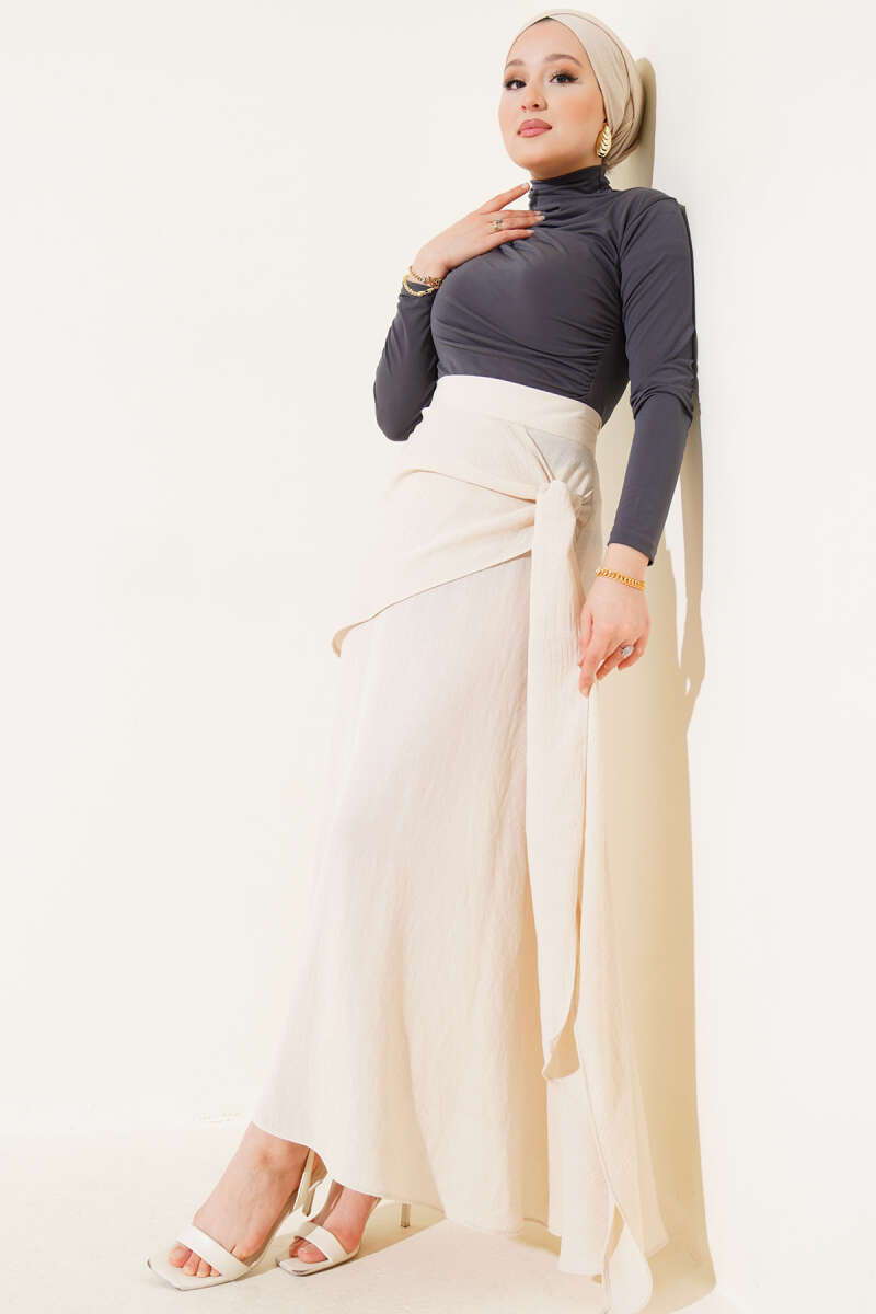 Kemerli Pileli Kloş Etek Kahve