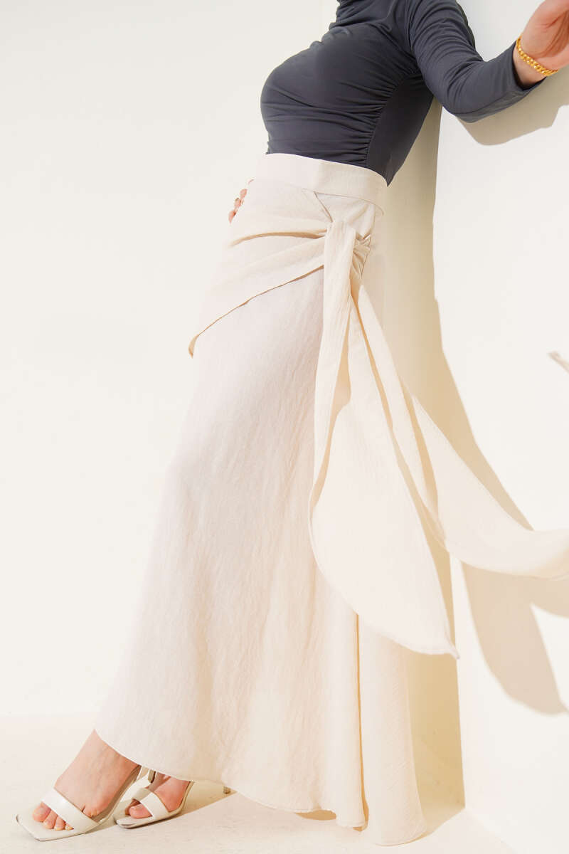 Brodeli İnci Detaylı Etek Beyaz