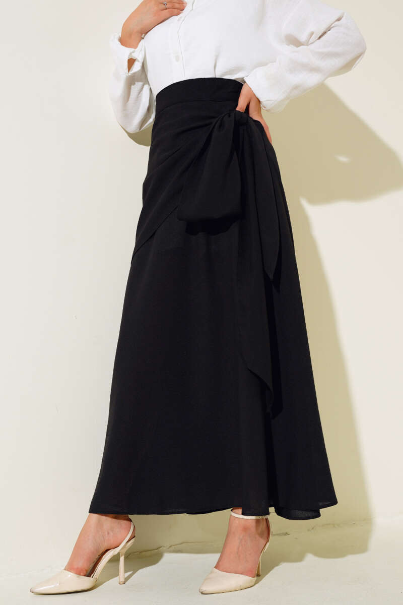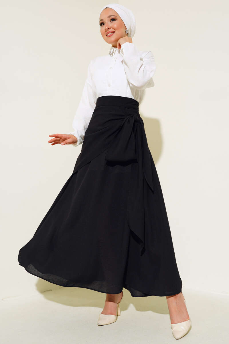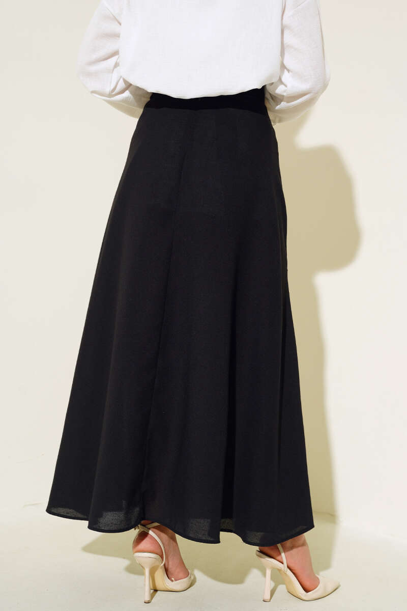 Beli Kemerli Lastikli Pileli Etek Siyah