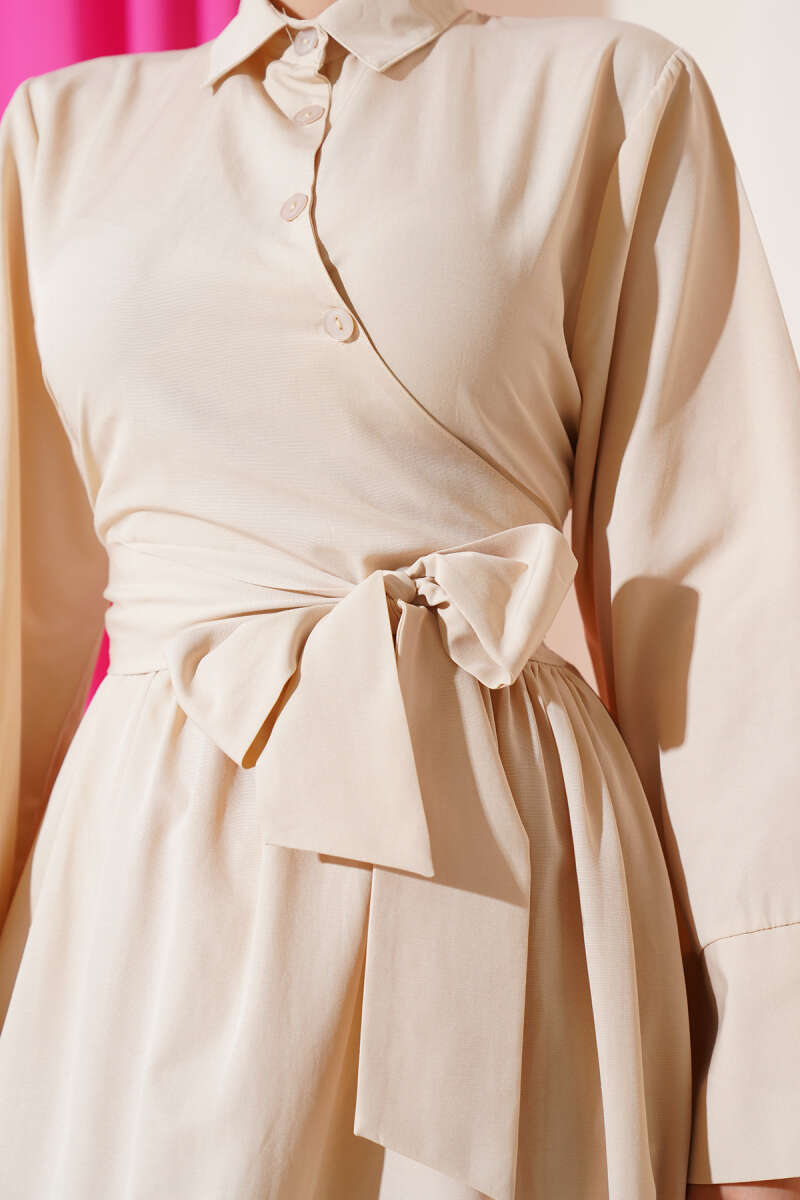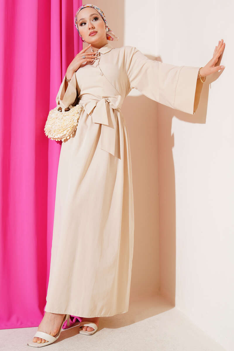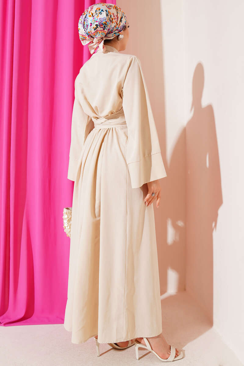 Ayna Kemer Tokalı Bej Şifon Elbise