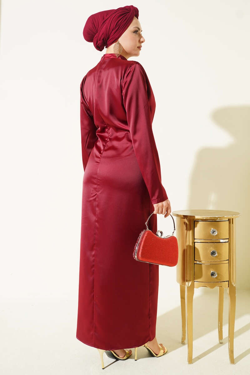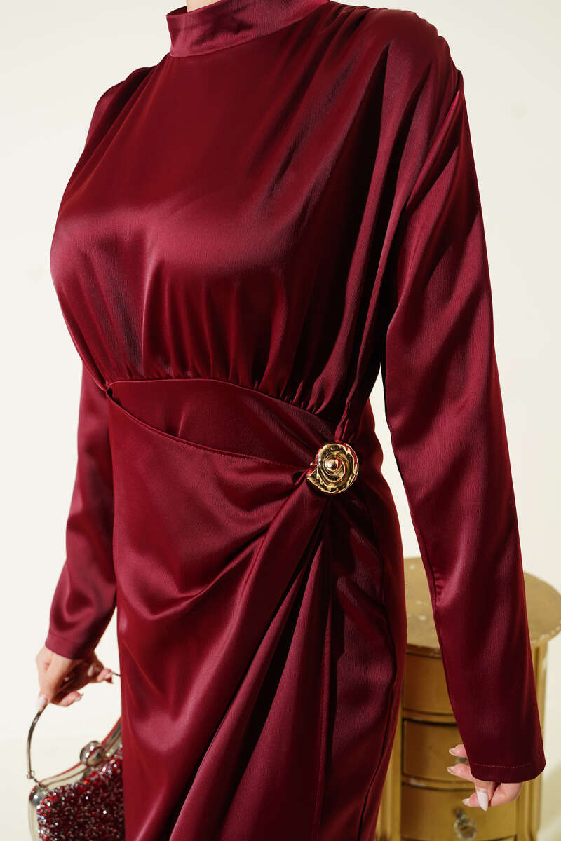 Bilek Bağlamalı Kuşaklı Abiye Elbise Bordo