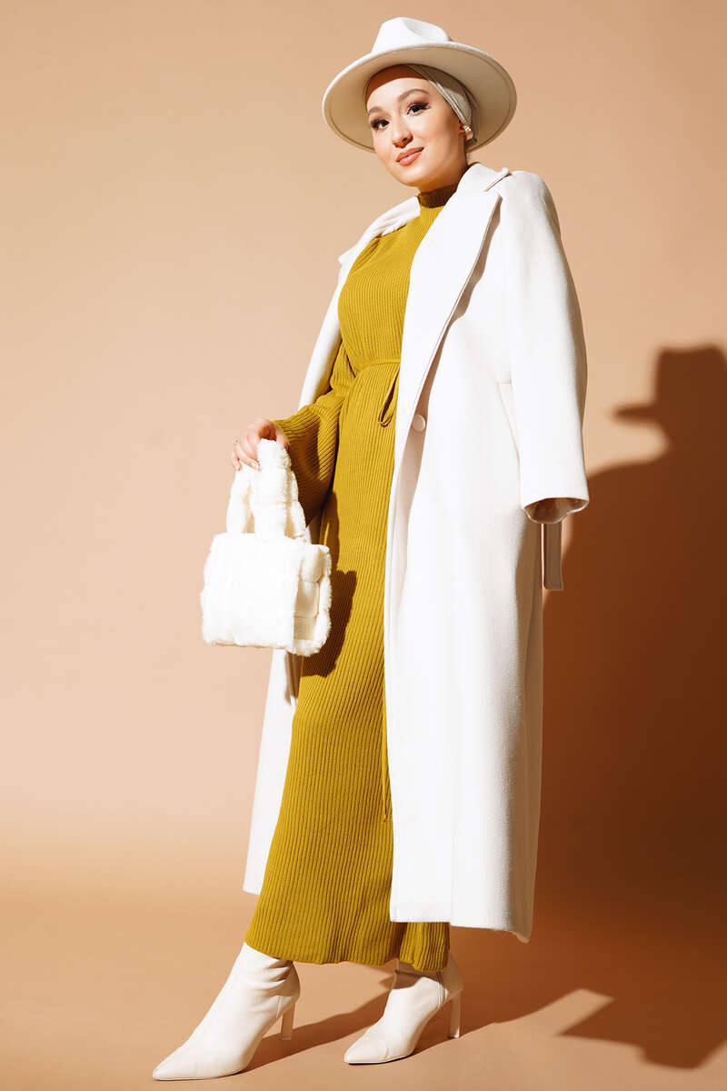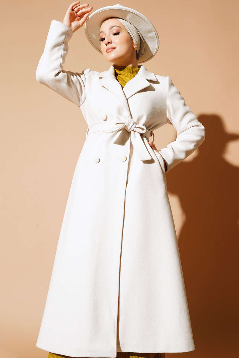 Yeni sezon şahane kabanımız şık duruşu ve yeni tarzıyla bu sezonun en göz alıcı modeli olacak. İçi astarlı olan kabanımızın dik kruvaze yakası ayrı bir hava katmıştır. İki düğmeli kabanımızn beli kuşaklıdır. İki adet kemer köprüsü bulunmaktadır.