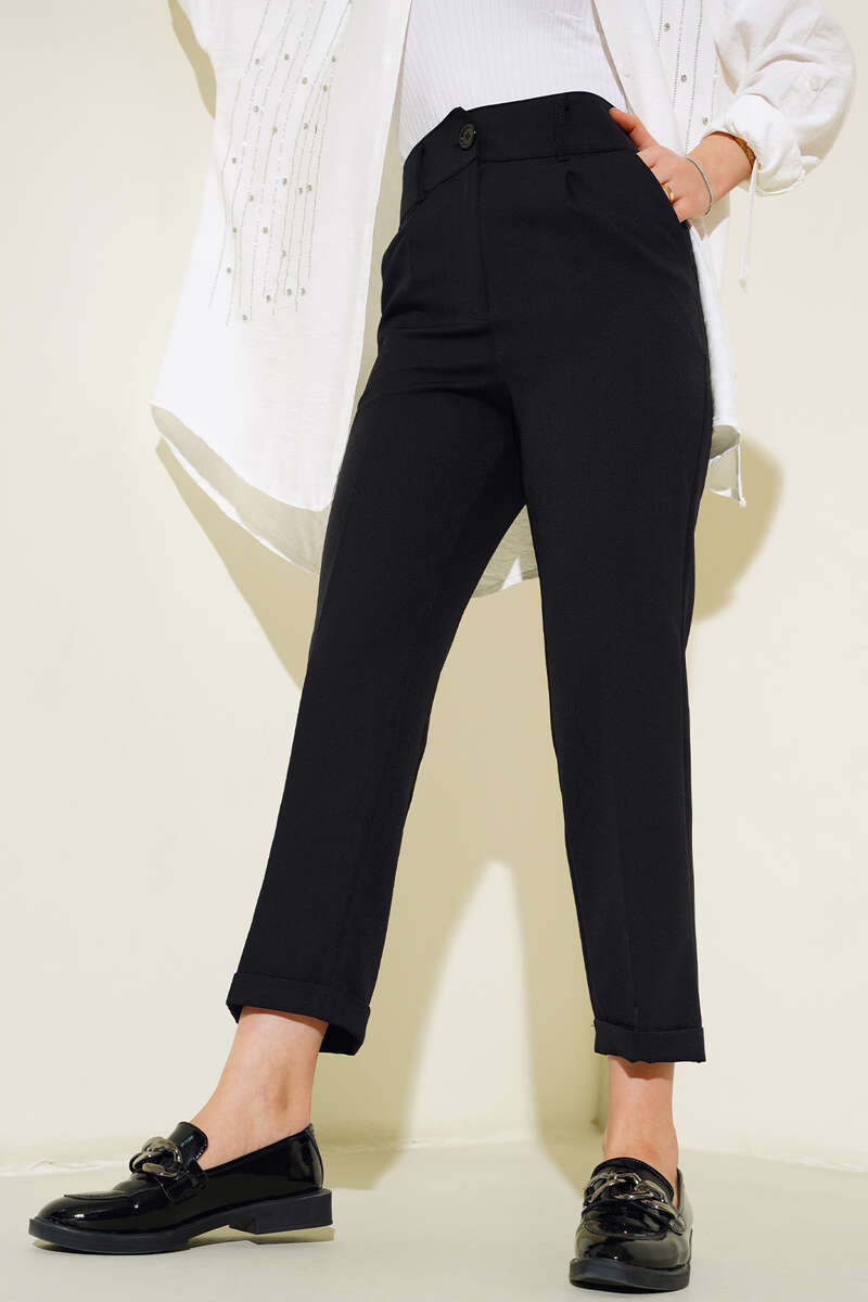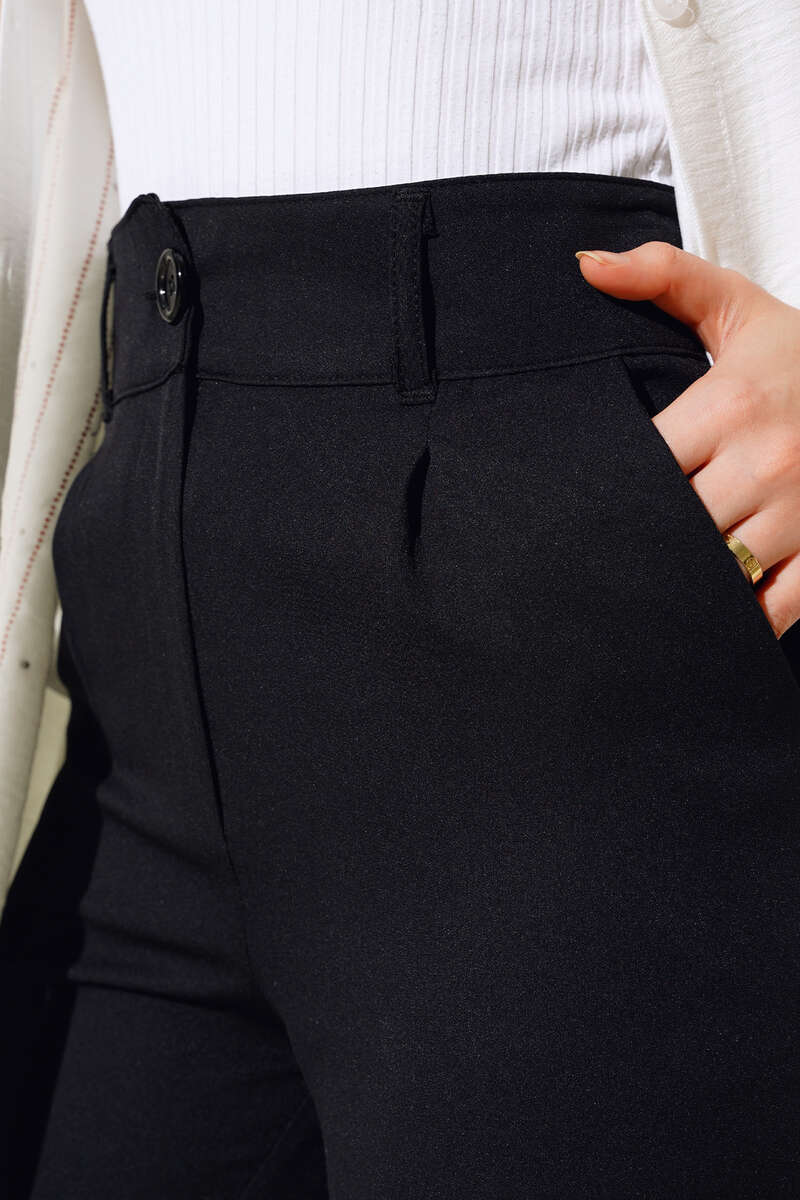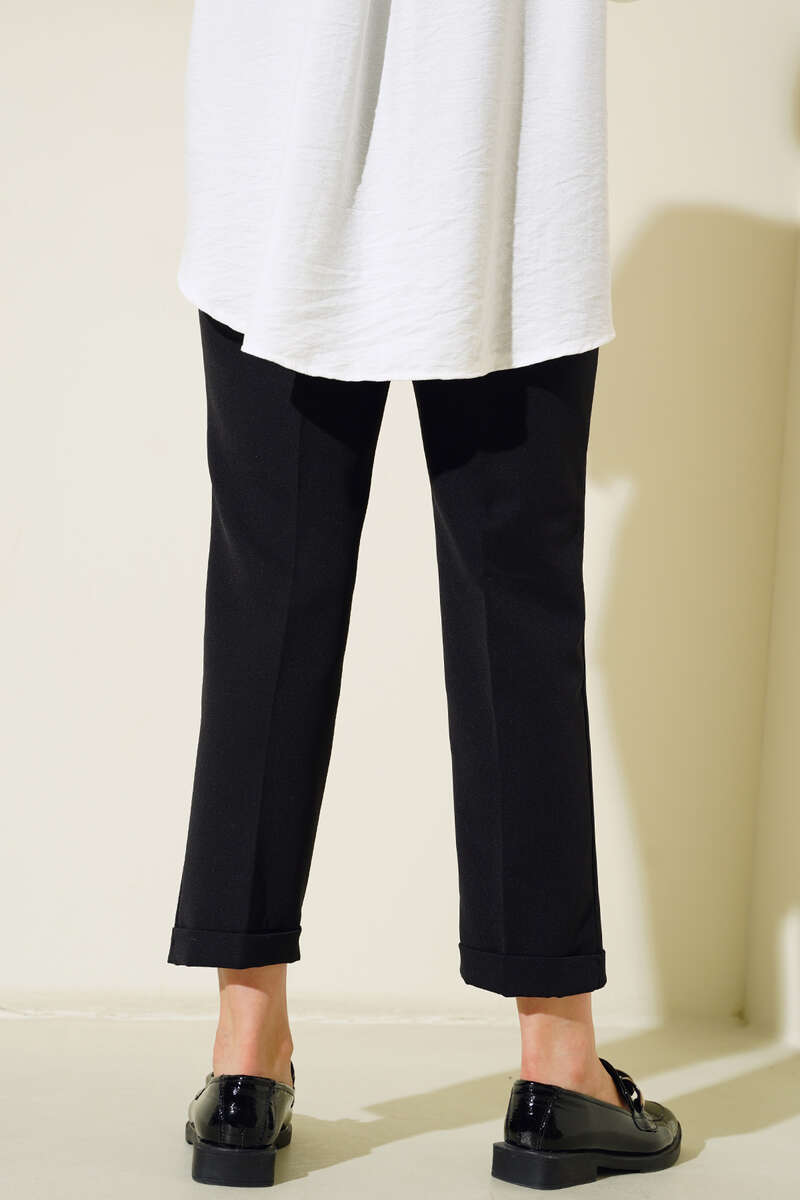 Geniş Bel Lastikli Çımalı Pantolon Siyah