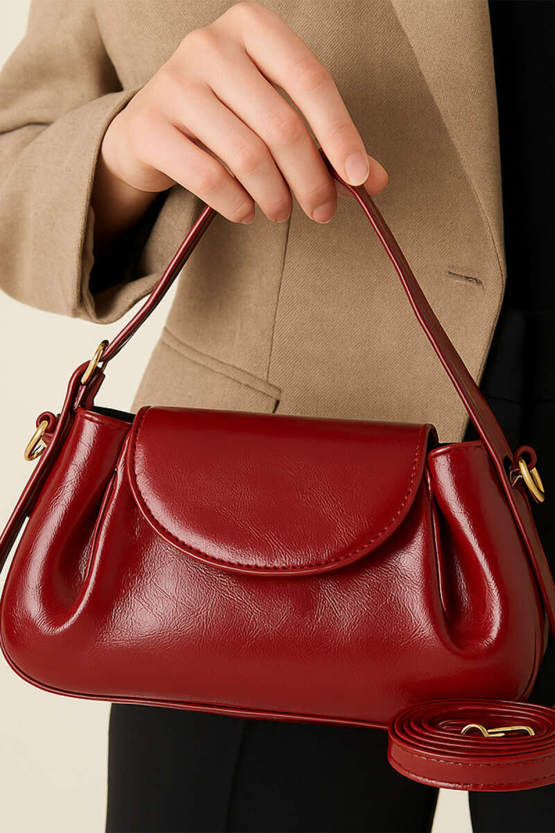 Tek Kemer Detaylı Rugan Çanta Kırmızı