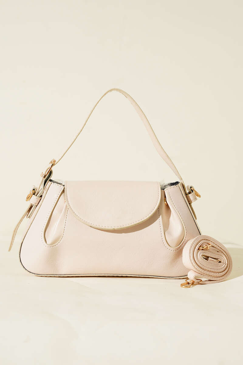 Yan Çıtçıtlı Rugan Çanta Krem