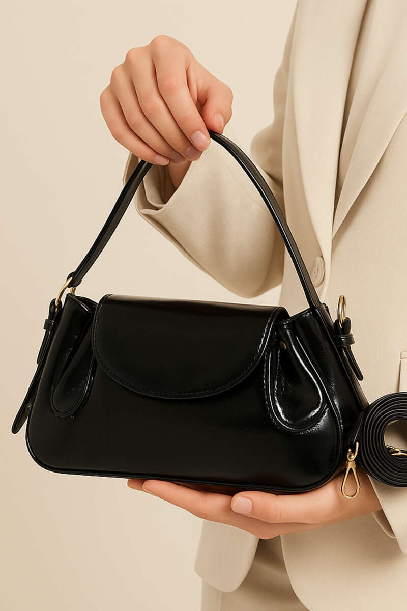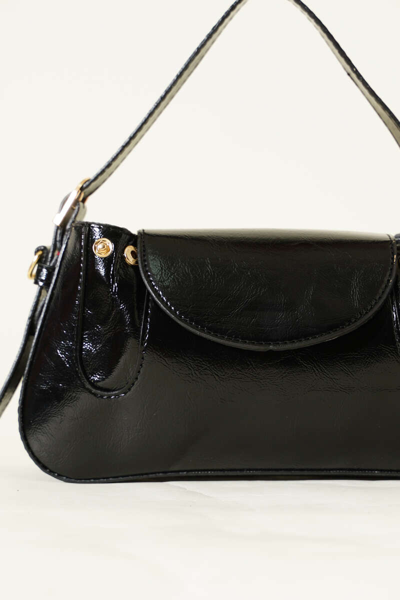 Yan Çıtçıtlı Rugan Çanta Siyah
