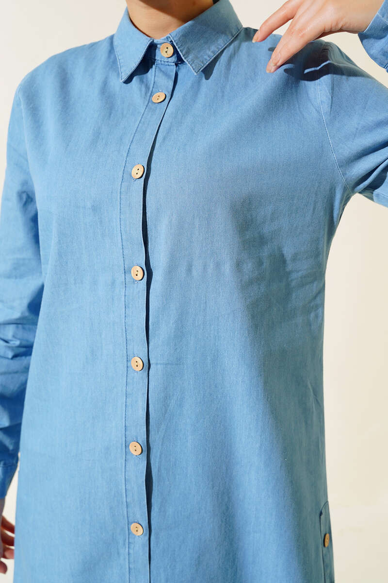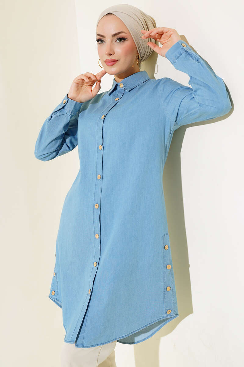 Yeni sezon model tuniğimiz şık ve sade tasarımıyla sizler için geldi. Tuniğimiz kot rengiyle dikkat çekmektedir. Uzun yapıdadır. Tuniğimizin boydan düğmelidir.