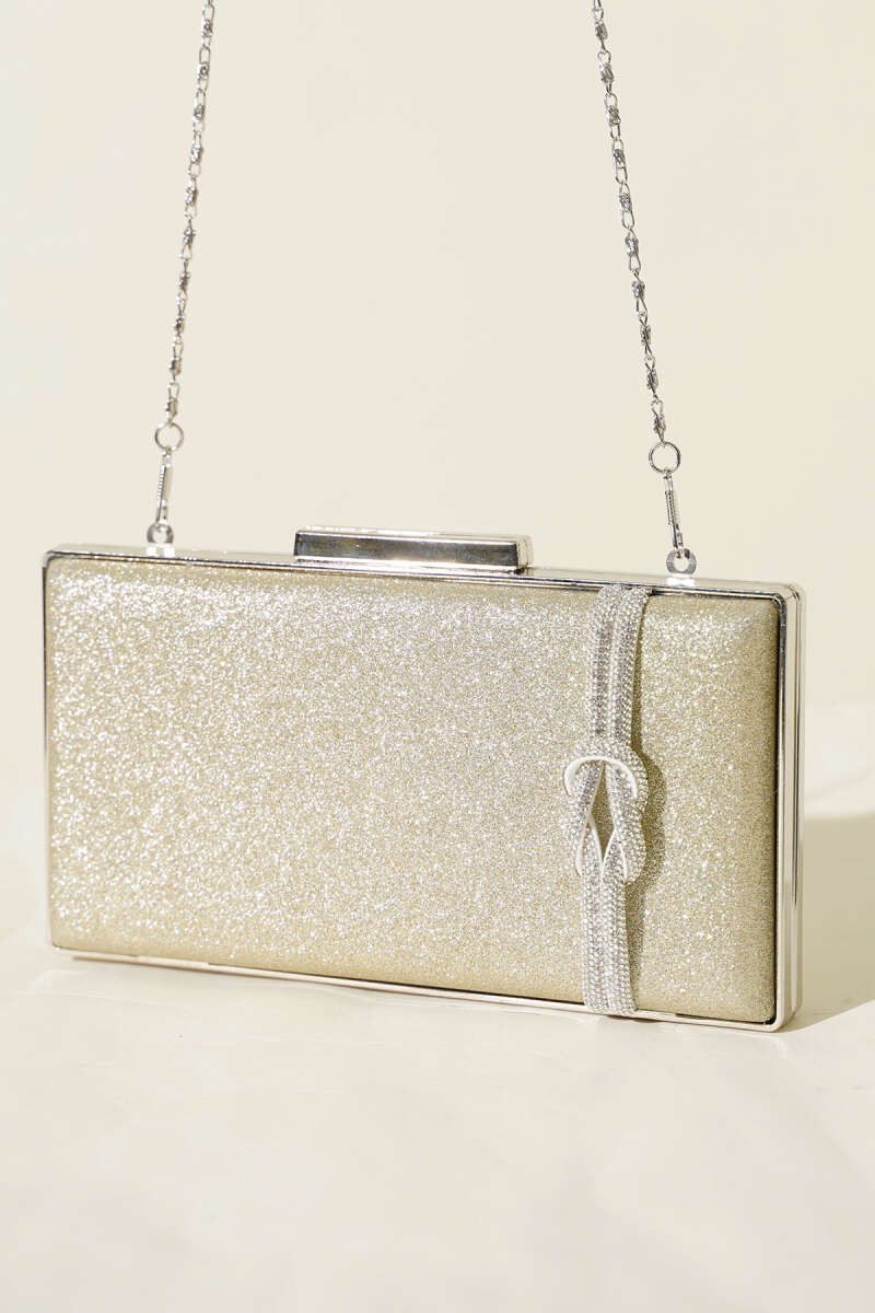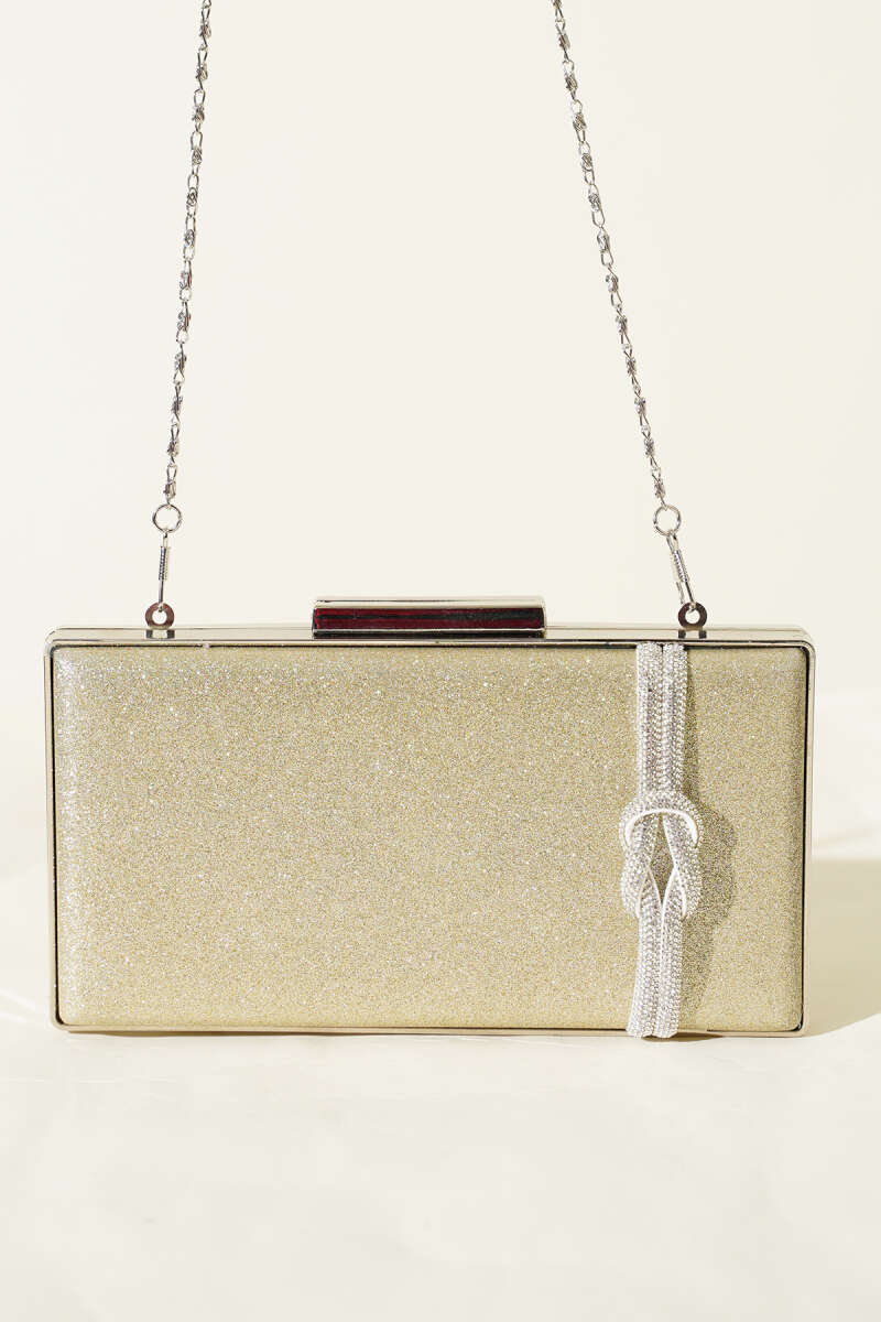 Yan Düğüm Detaylı Abiye Çanta Gold