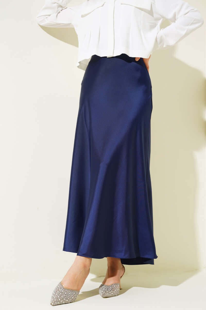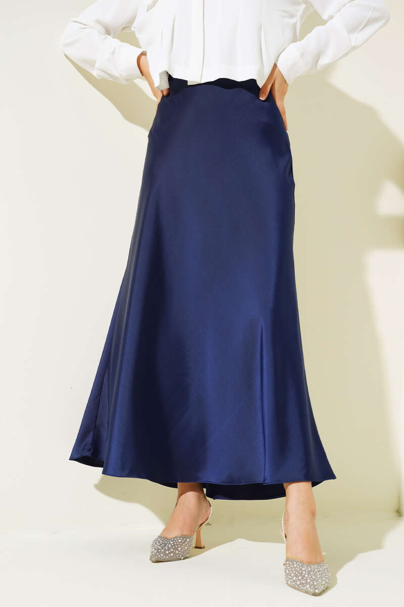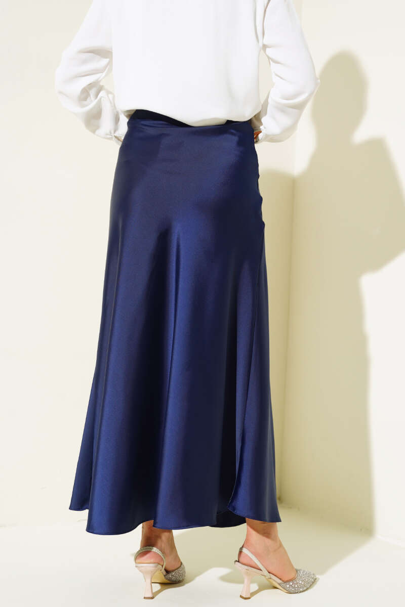 Yan Fermuarlı Saten Etek Lacivert