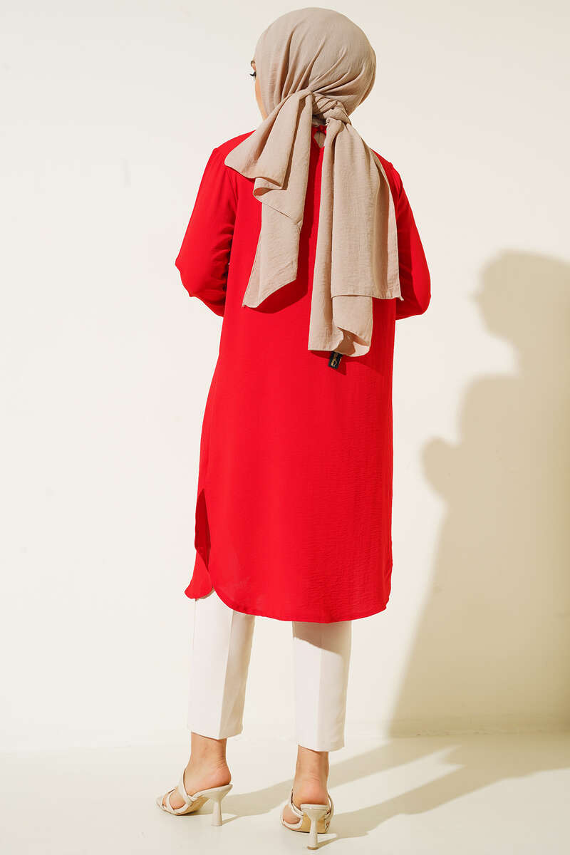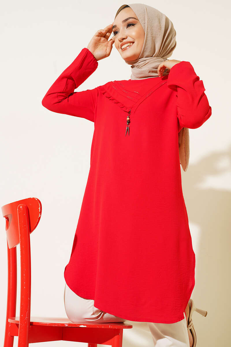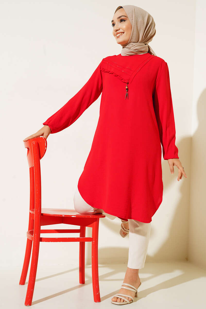 Yan Fırfırlı Ayrobin Tunik Kırmızı