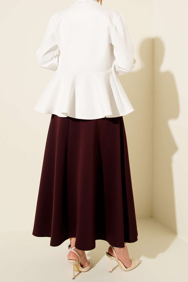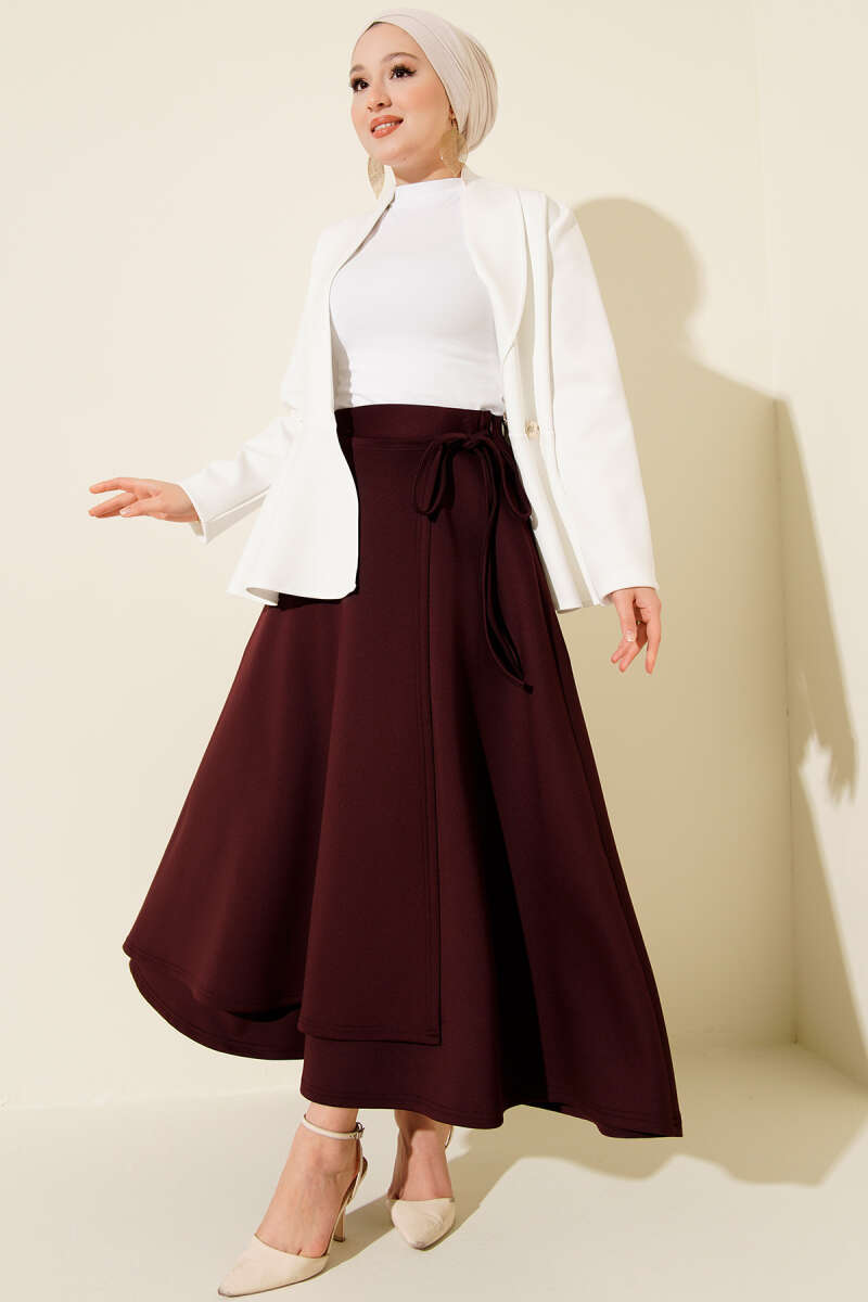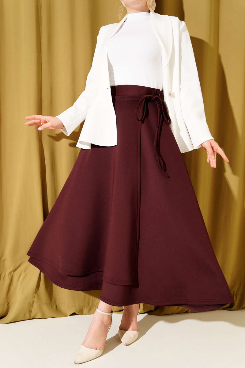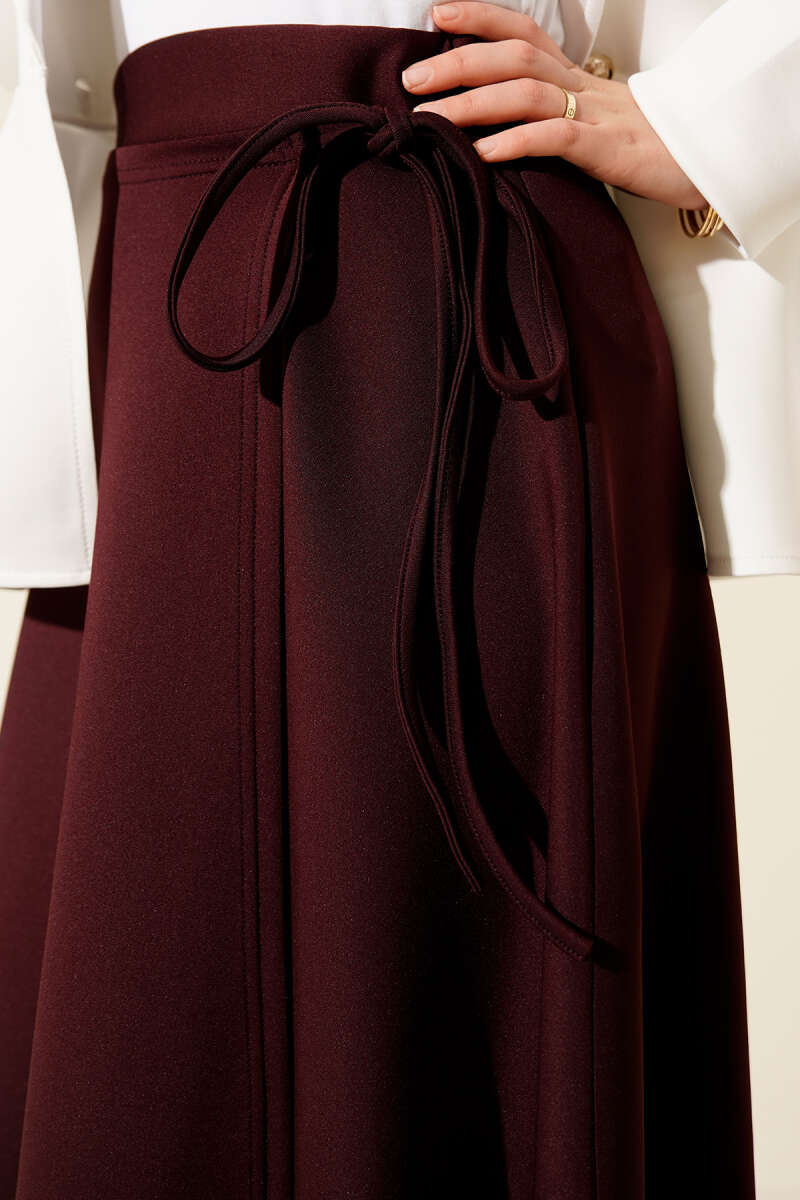 İnce Kemerli Süet Etek Bordo