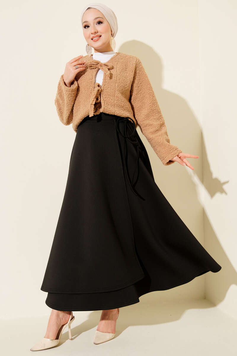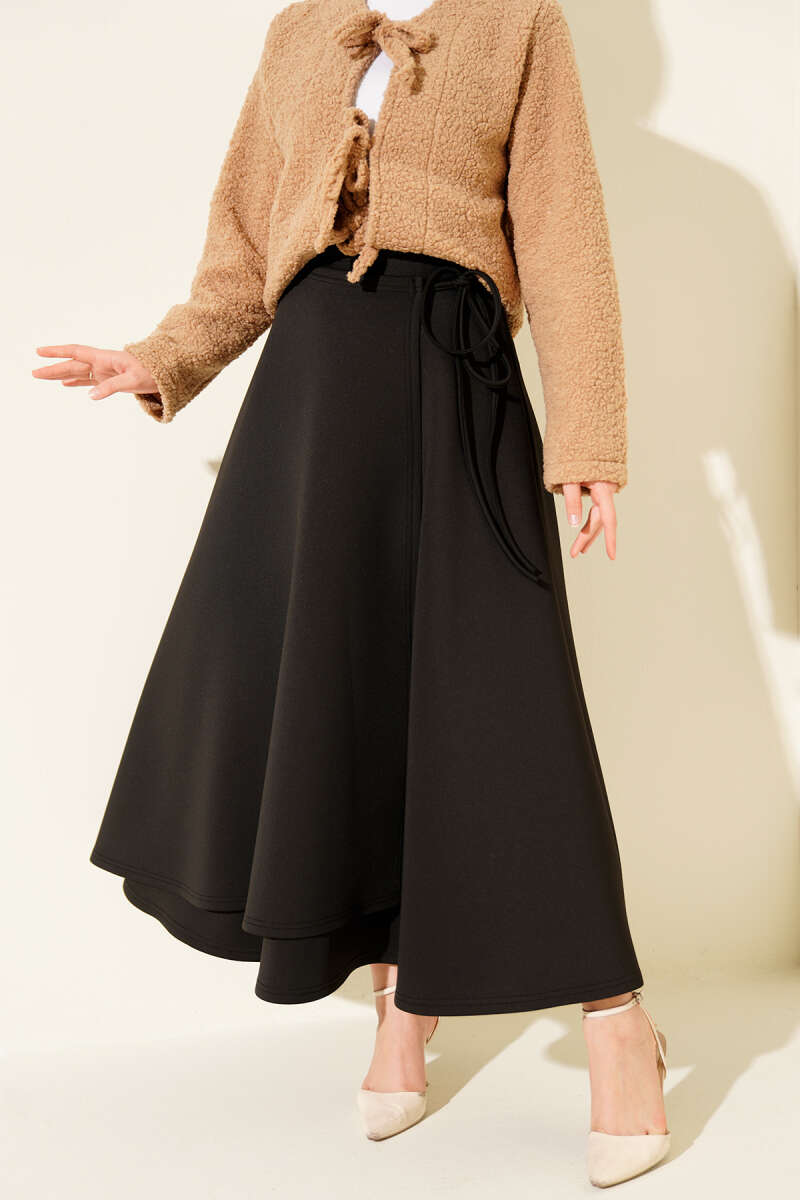 Yan İp Bağcıklı Scuba Etek Lacivert