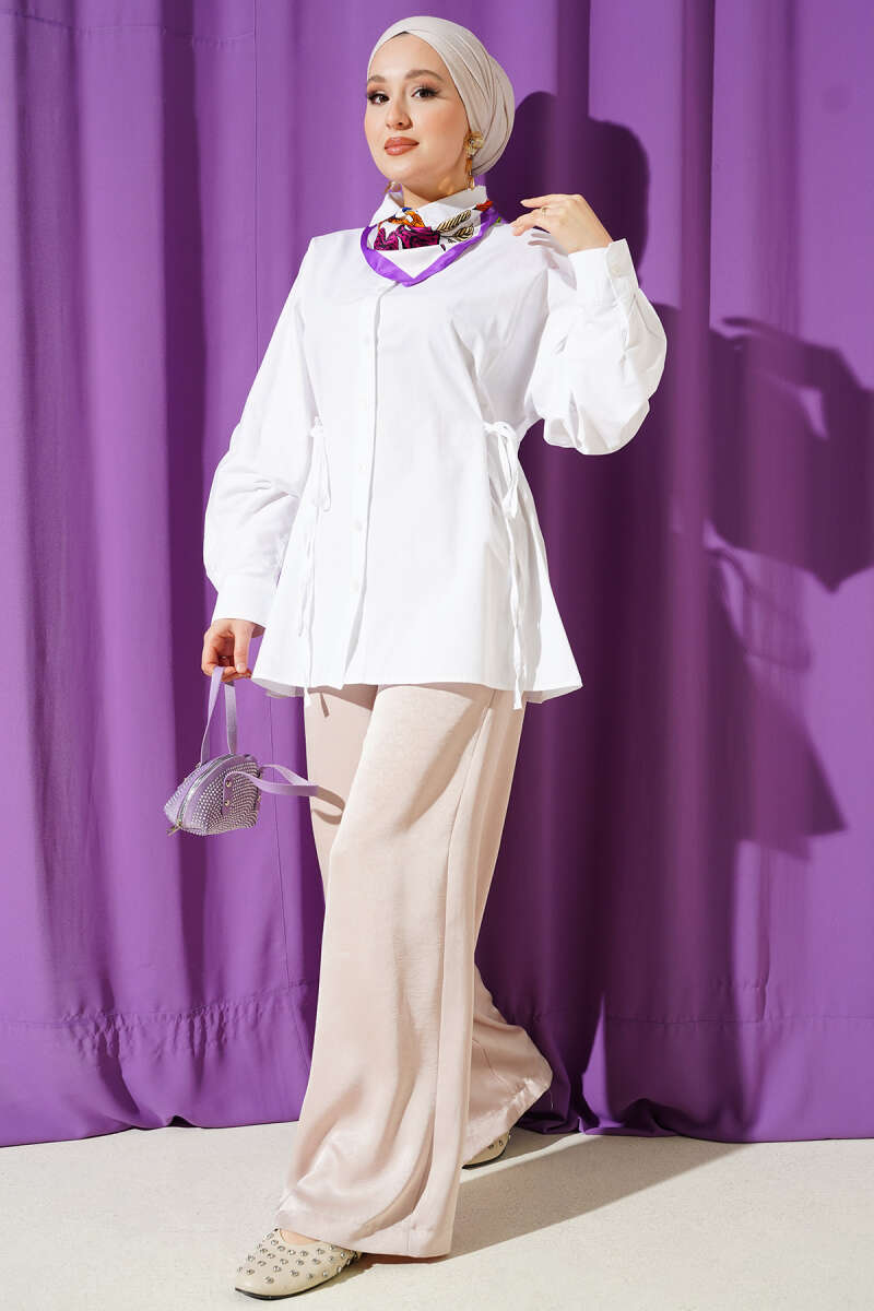 Yan İp Bağlamalı Basic Gömlek Beyaz