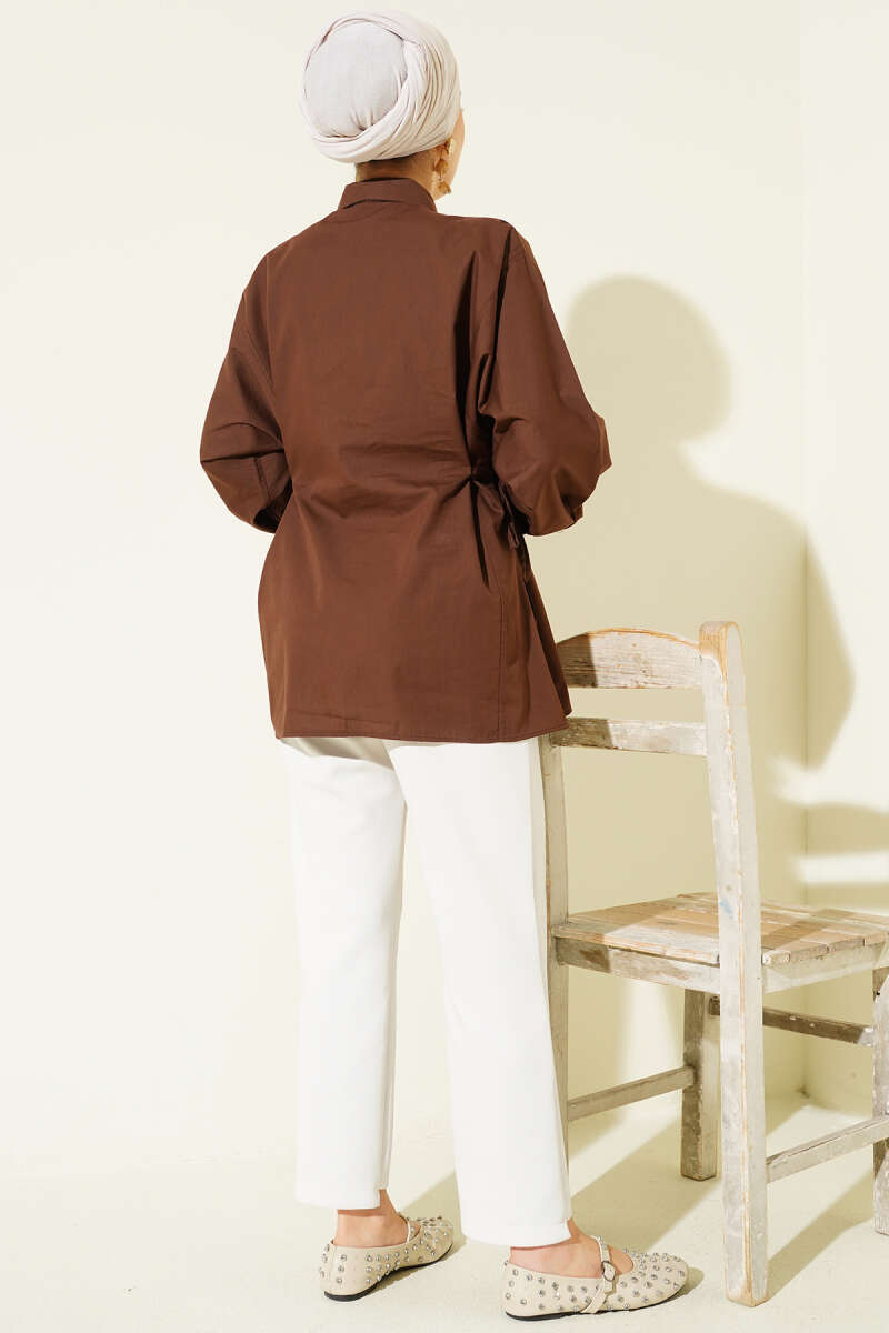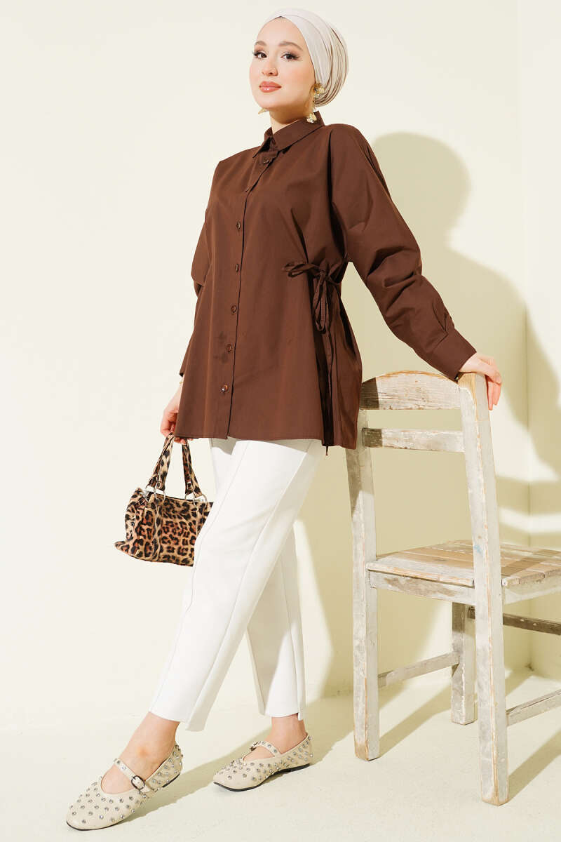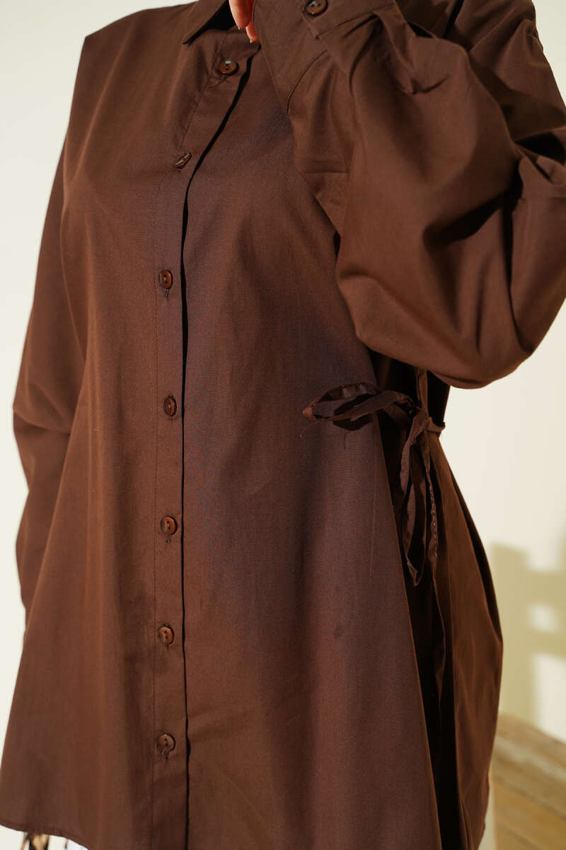 Yan İp Bağlamalı Basic Gömlek Kahve