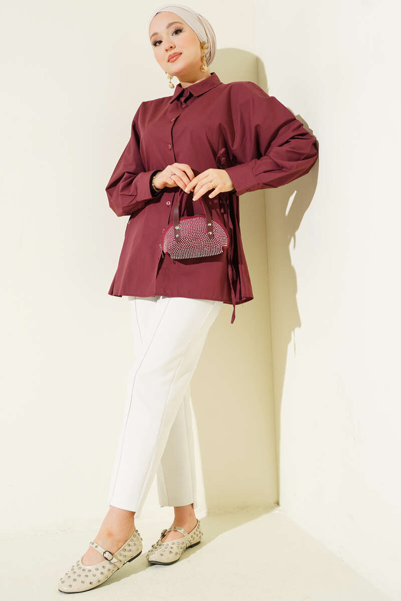 Yan İp Bağlamalı Basic Gömlek Magenta