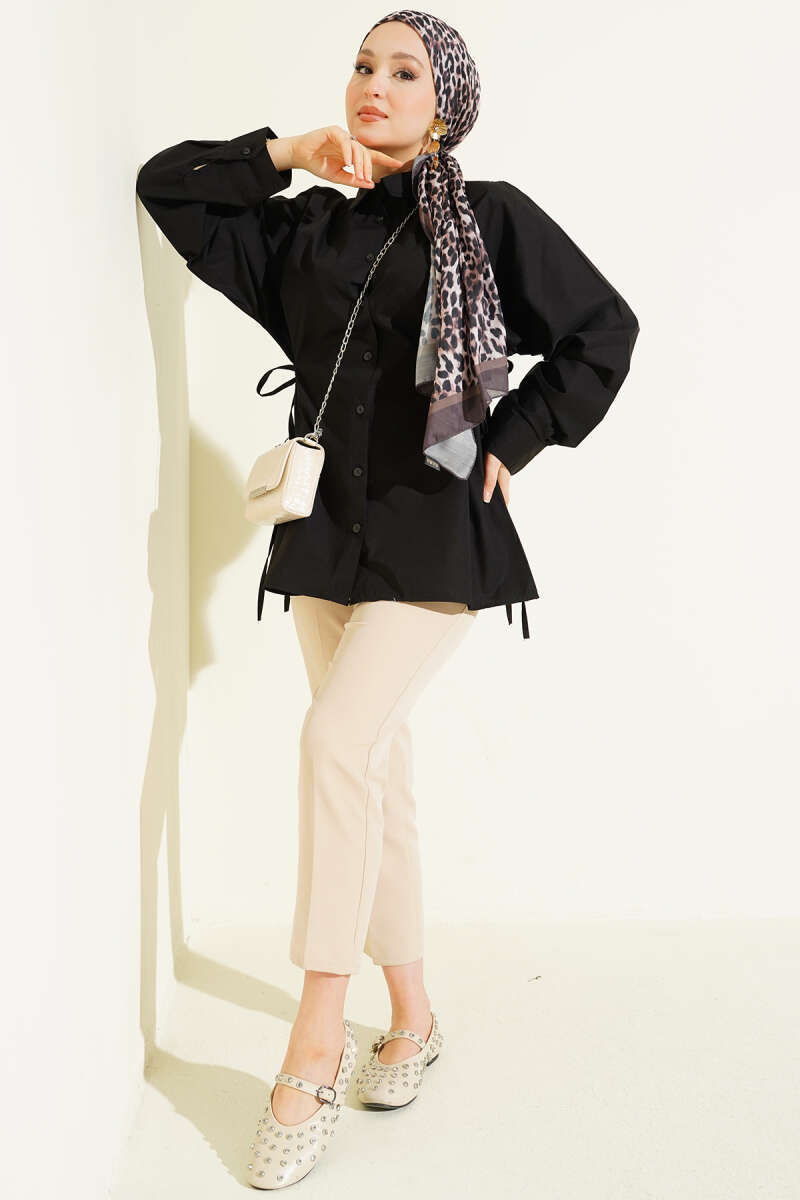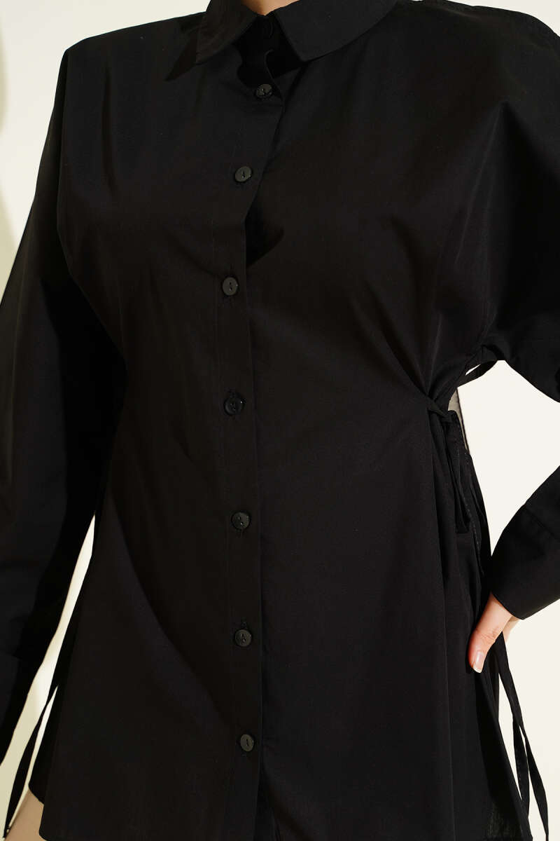 Yan İp Bağlamalı Basic Gömlek Siyah