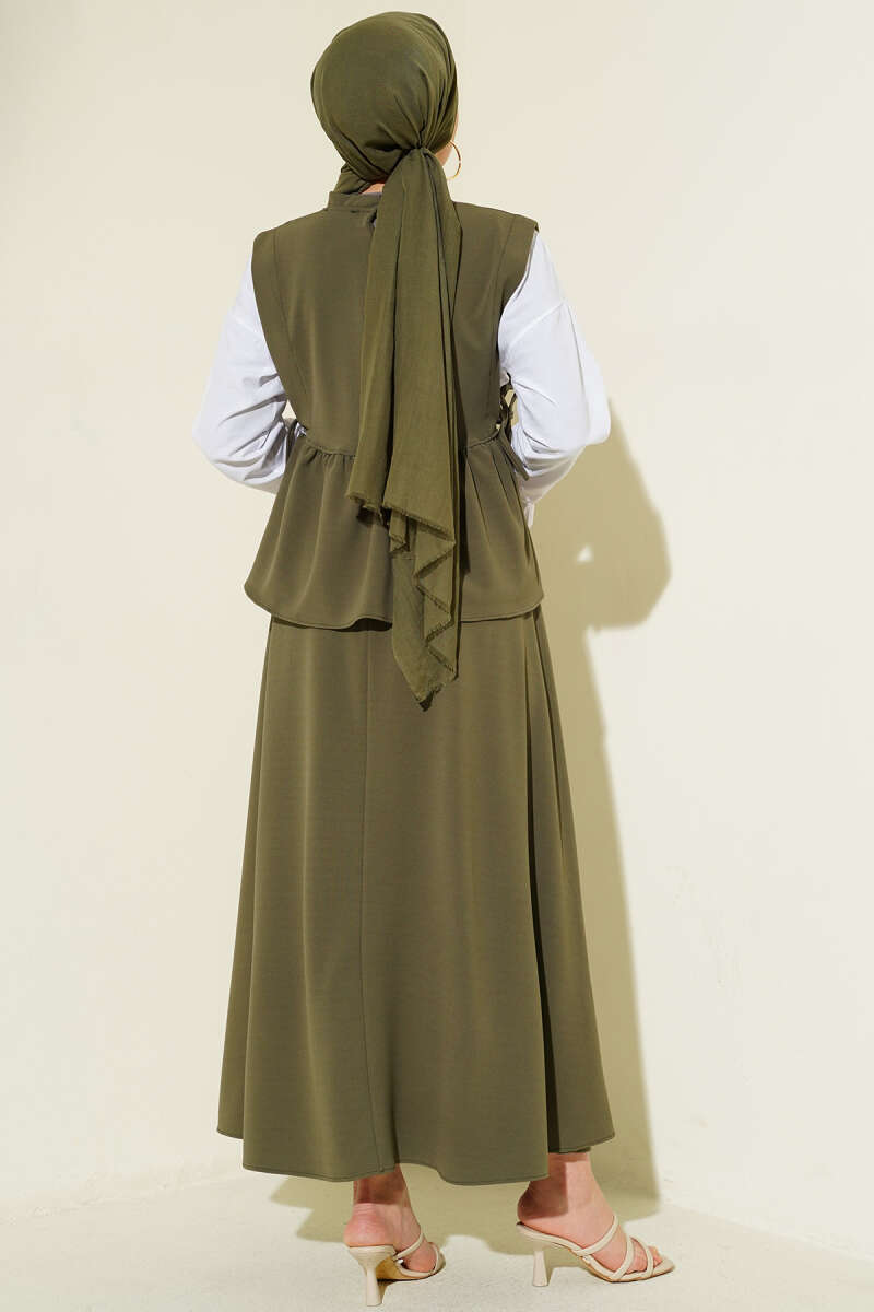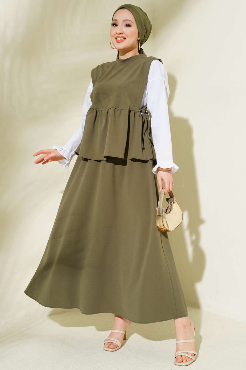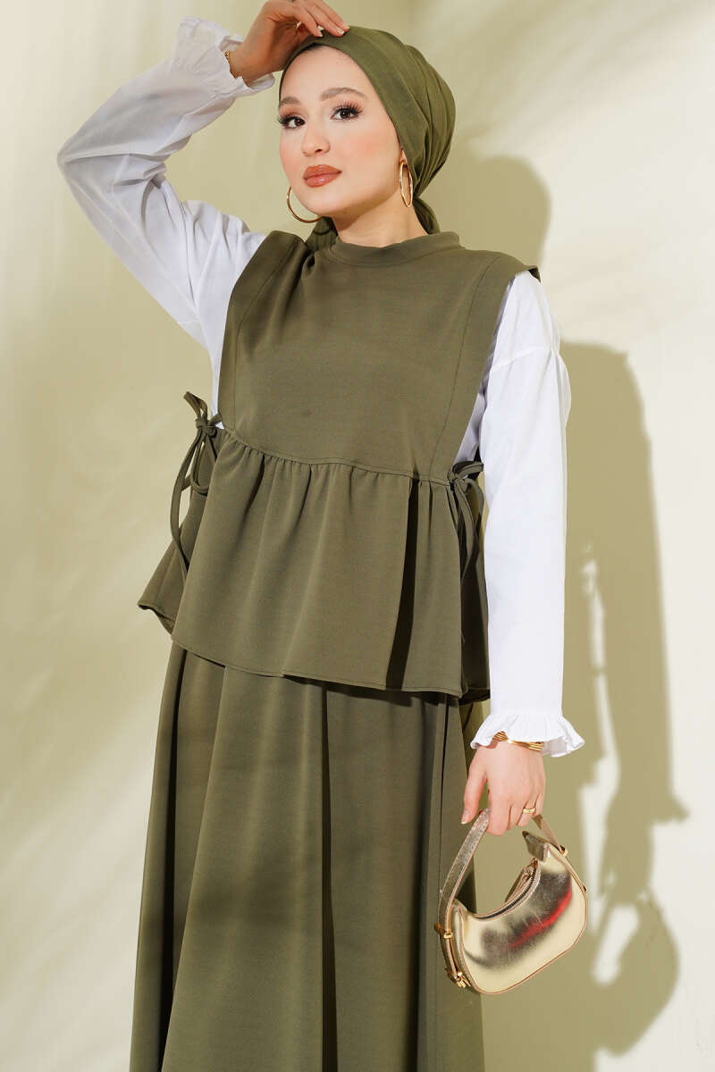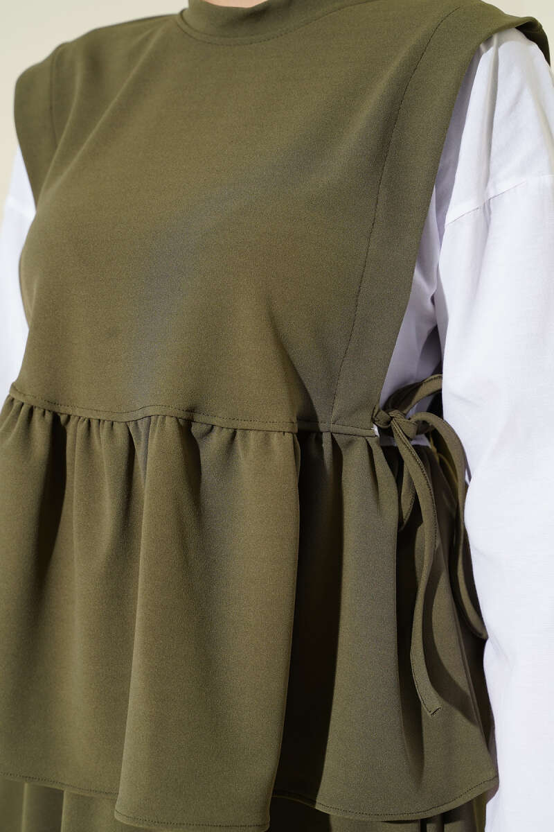 Yan İp Bağlamalı Gömlek Garnili Takım Haki