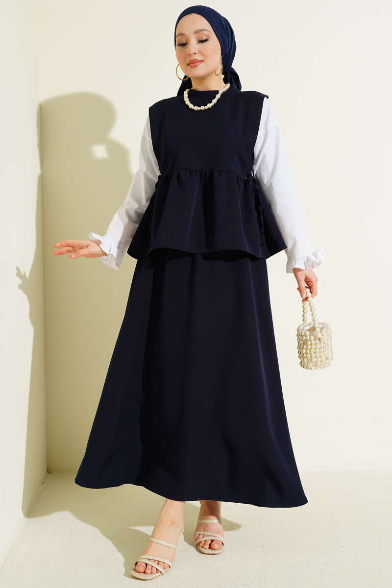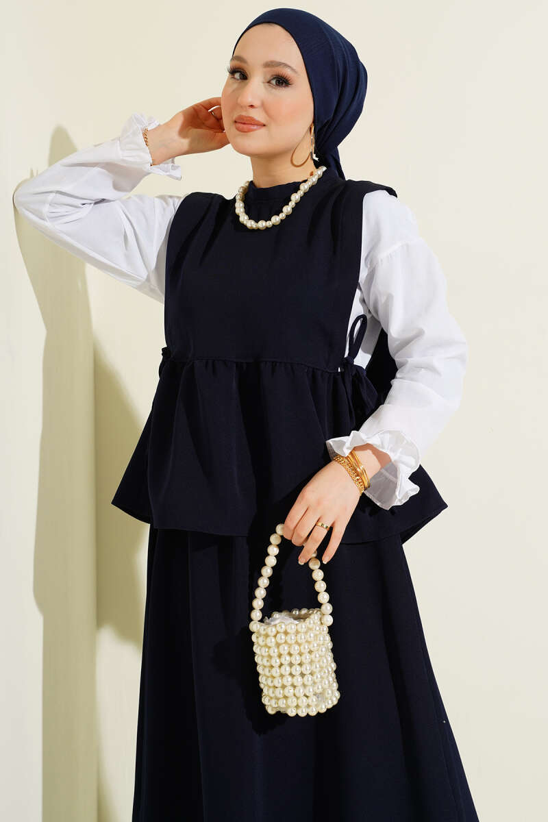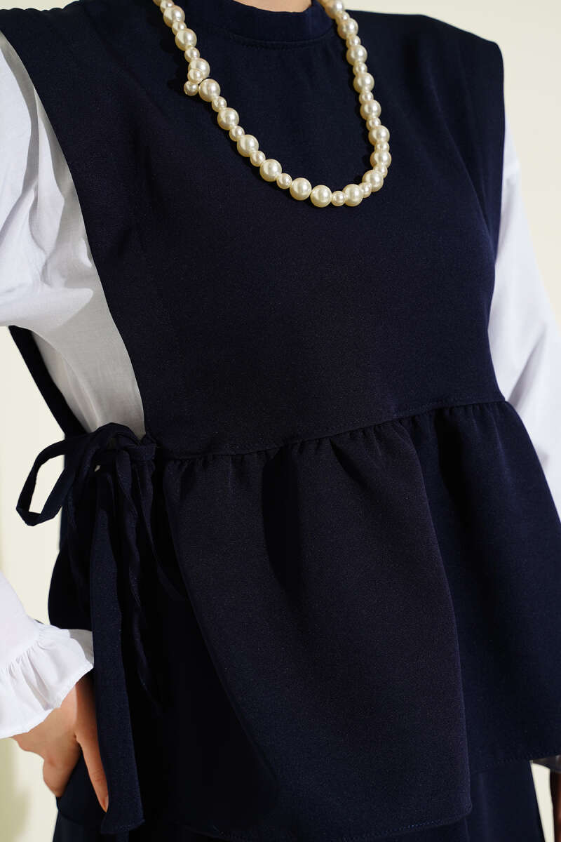 Yan İp Bağlamalı Gömlek Garnili Takım Lacivert