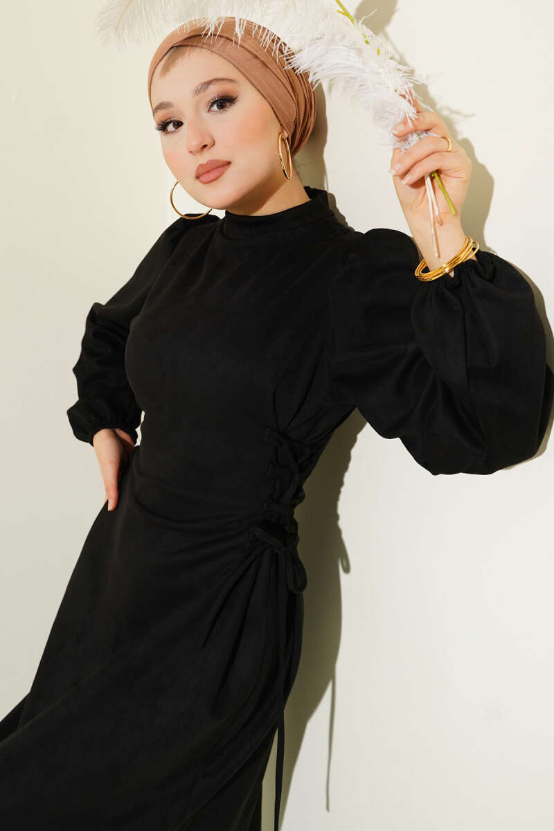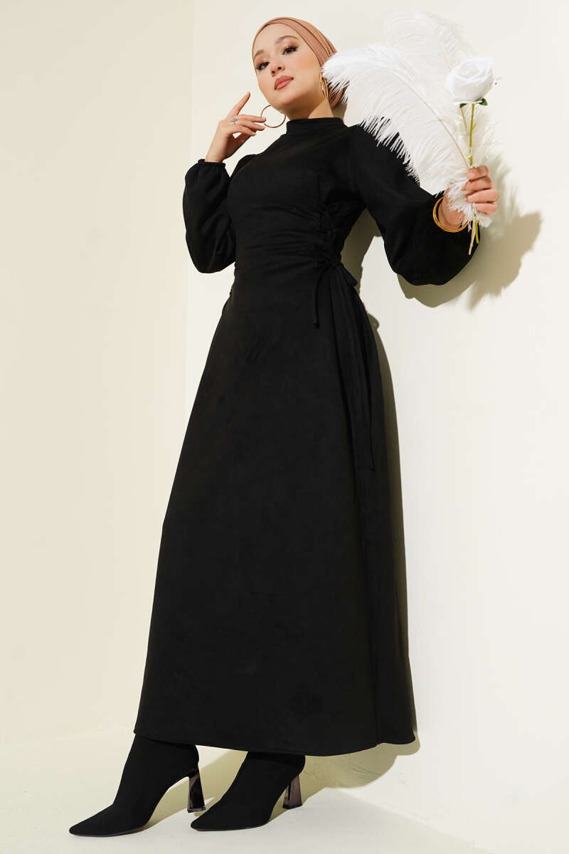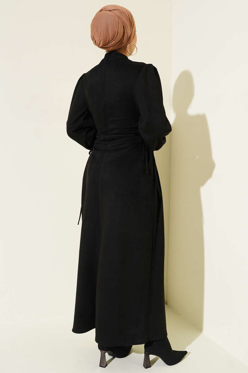 Yakası Yarım Fermuarlı Triko Elbise Siyah