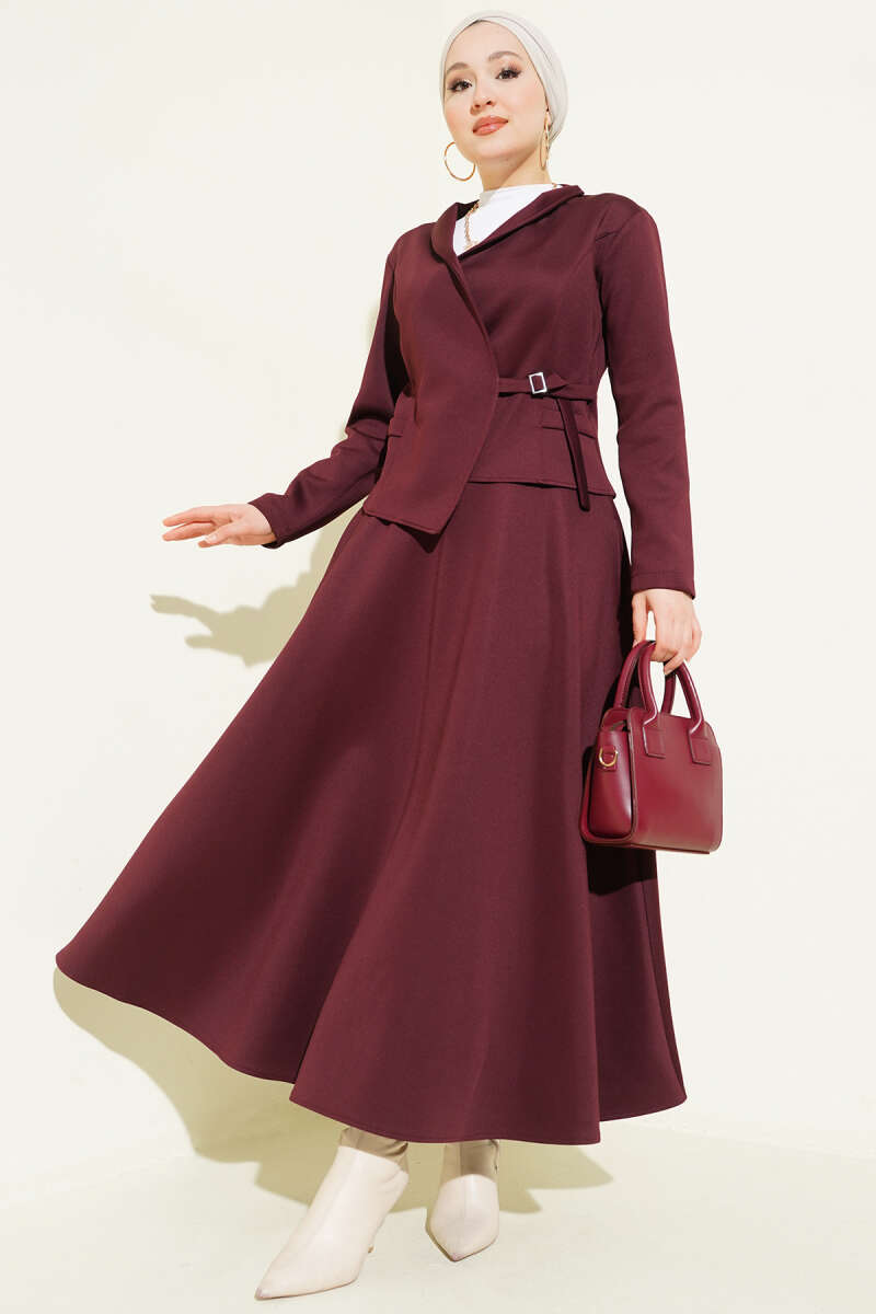 Bel Tünelli Cepli Scuba İkili Takım Bordo