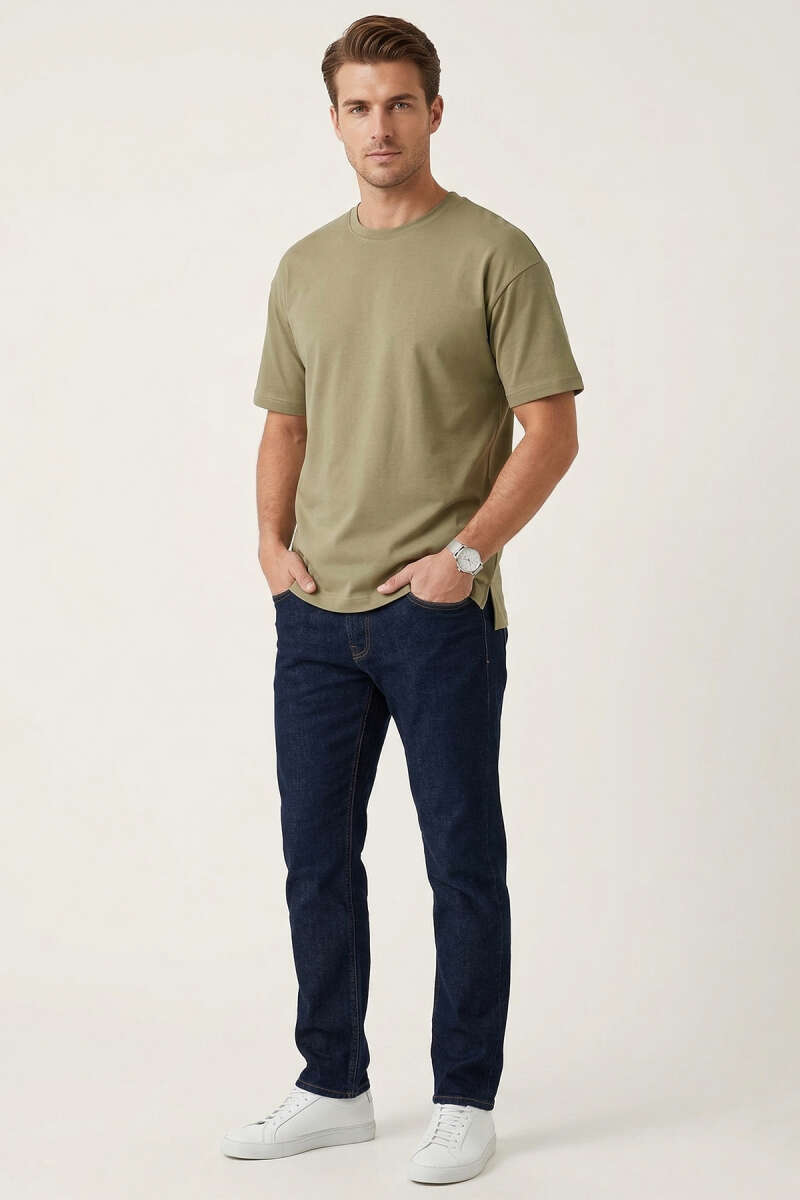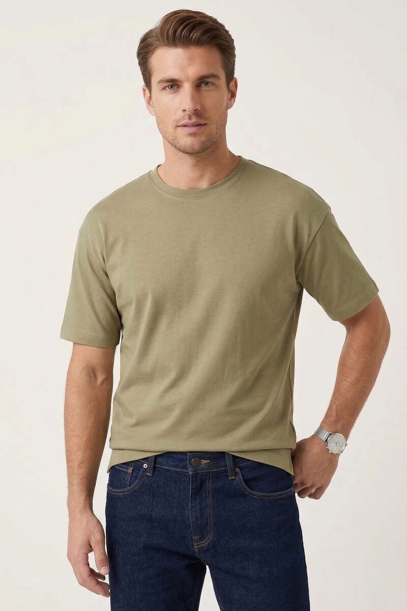 Yan Kesikli Basic Erkek T-Shirt Çağla Yeşili