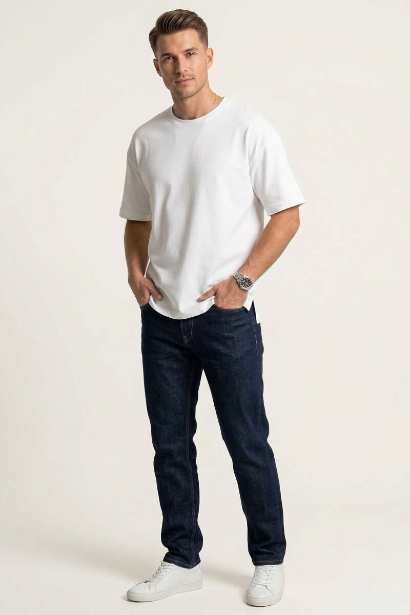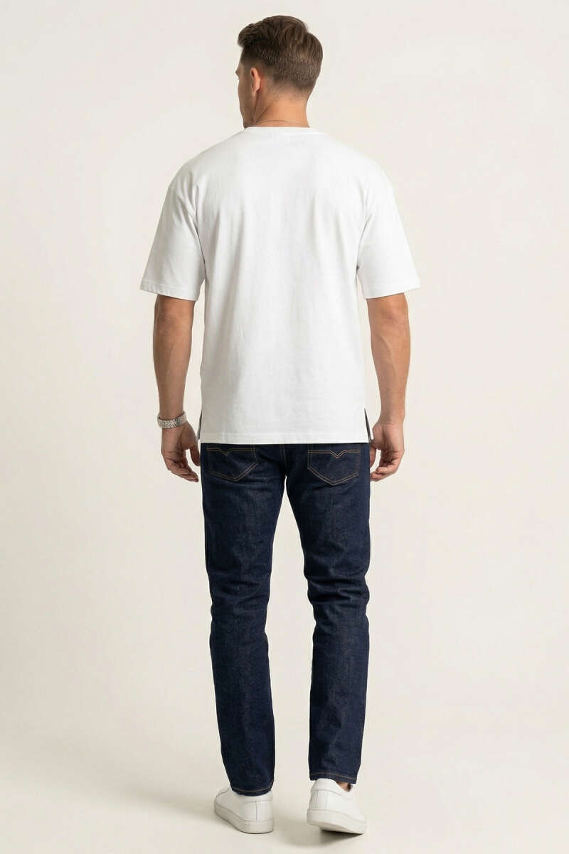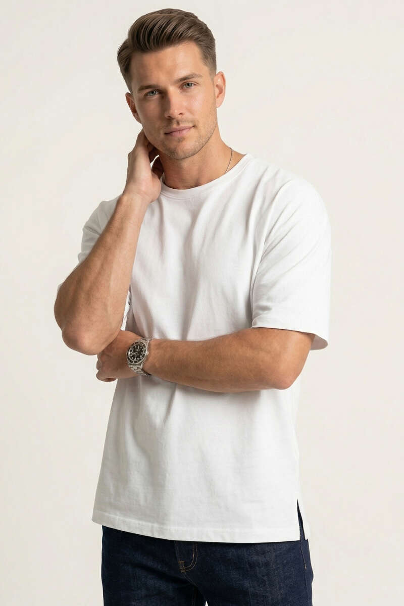 Yan Kesikli Basic Erkek T-Shirt Ekru
