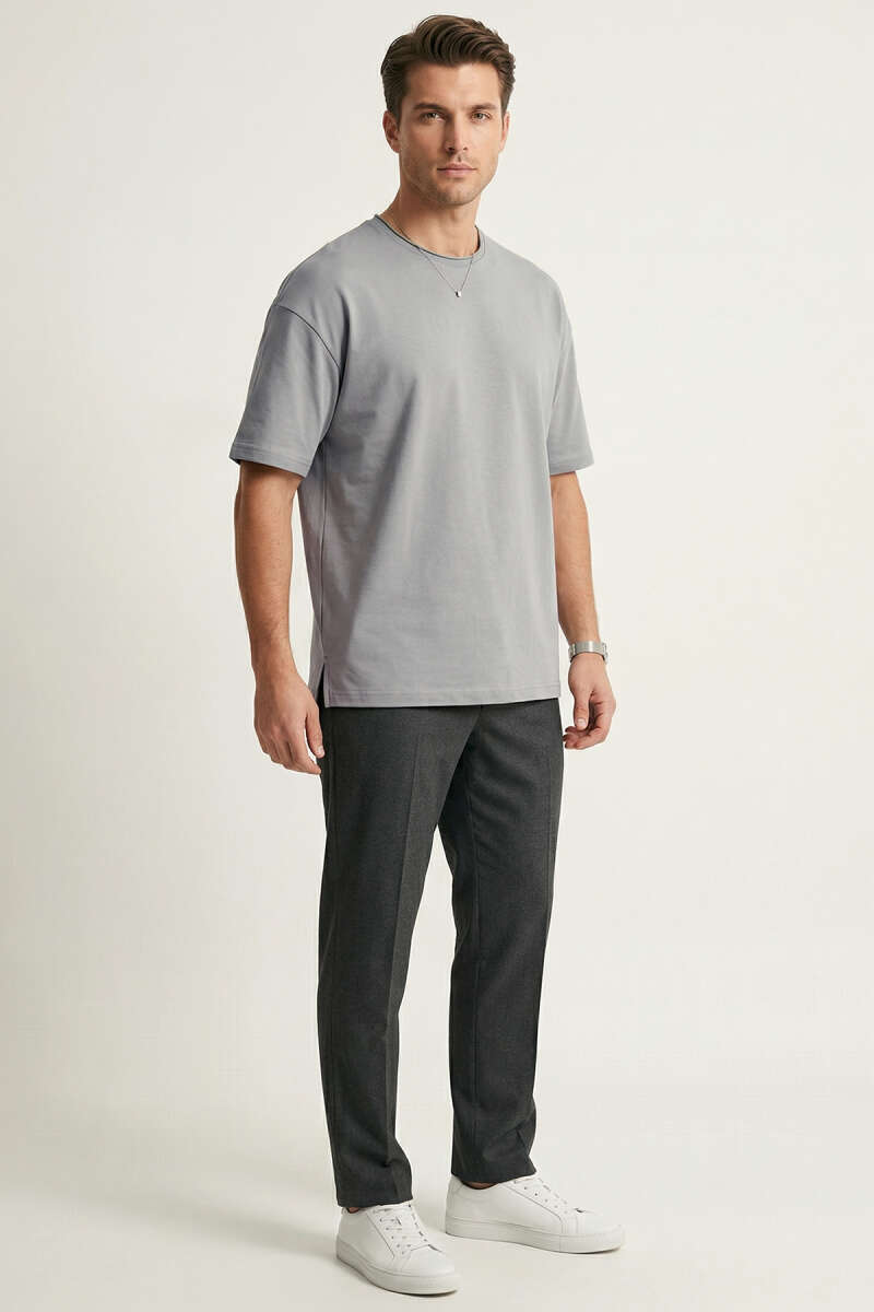 Yan Kesikli Basic Erkek T-Shirt Gri