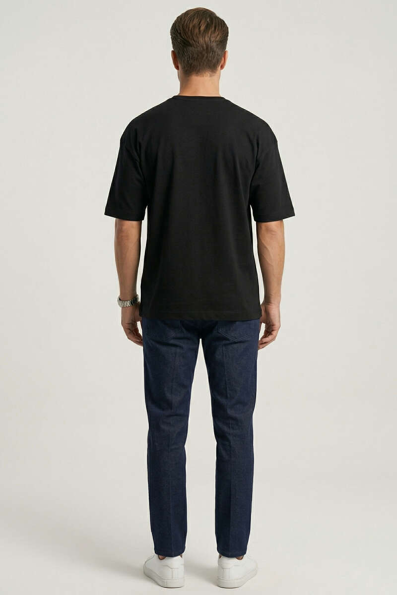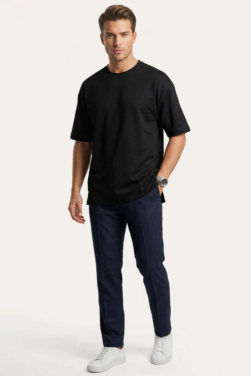 Yan Kesikli Basic Erkek T-Shirt Siyah