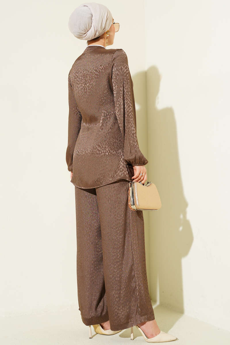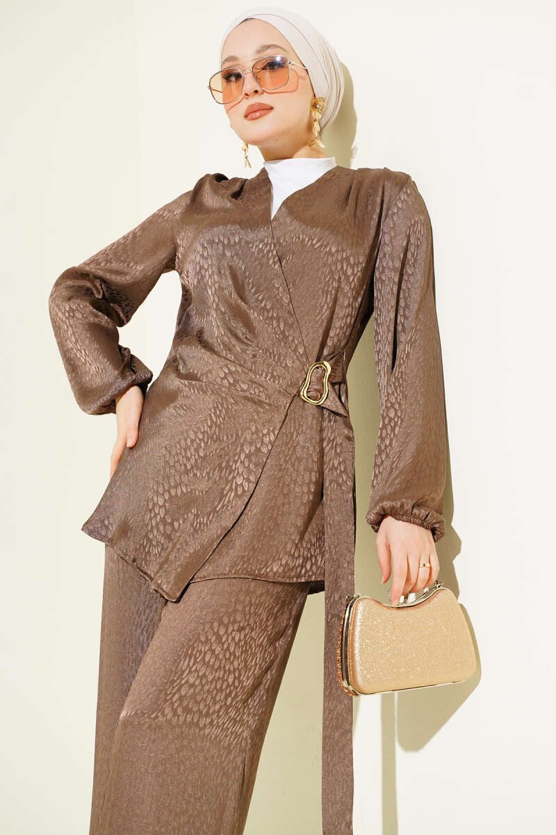 Parlak Pul Detaylı Abiye İkili Takım Kahve