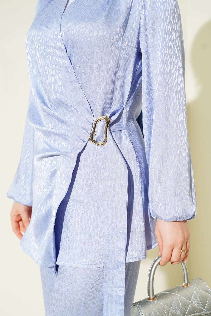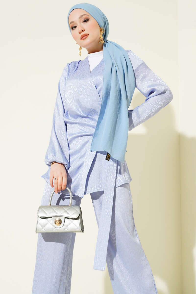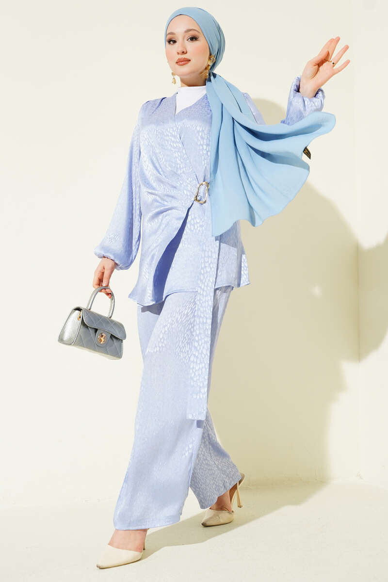 Parlak Pul Detaylı Abiye İkili Takım Mavi