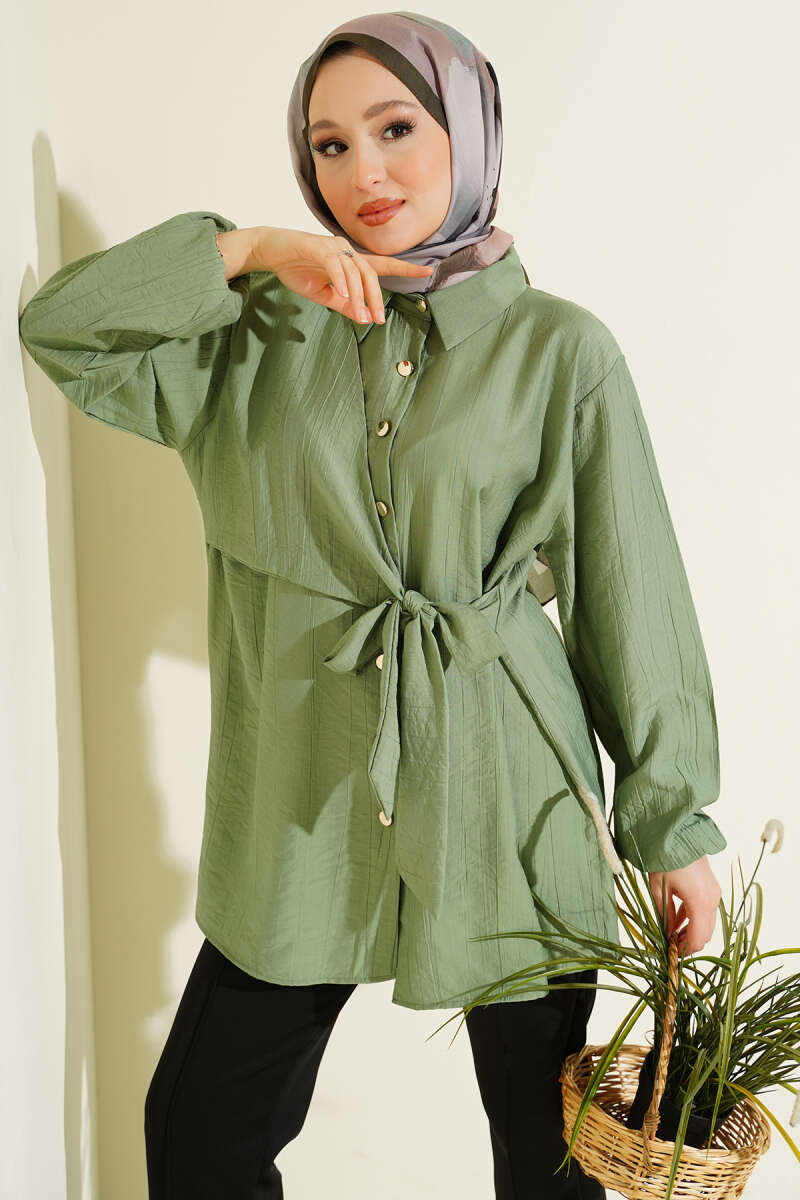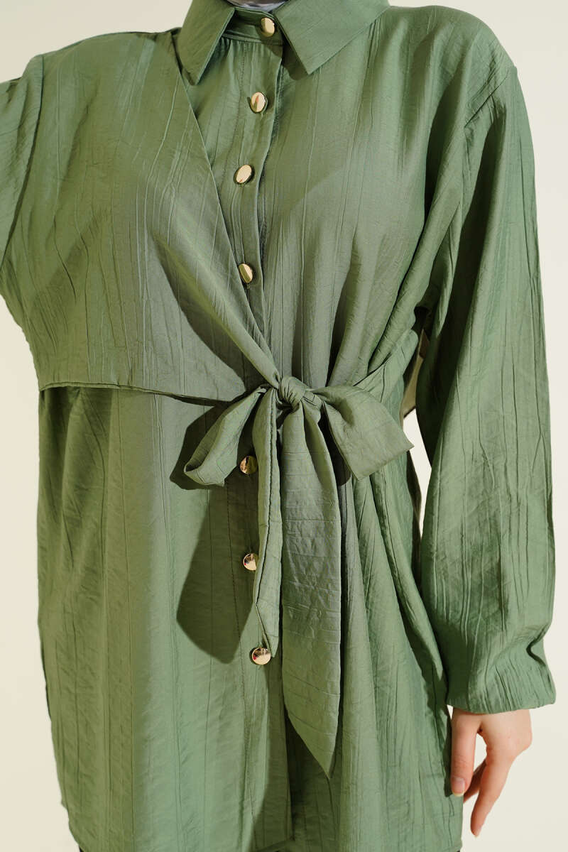 Yan Parça Bağlamalı Salaş Gömlek Çağla Yeşili