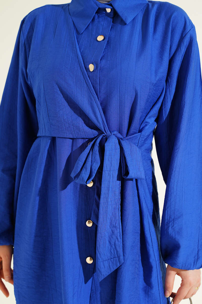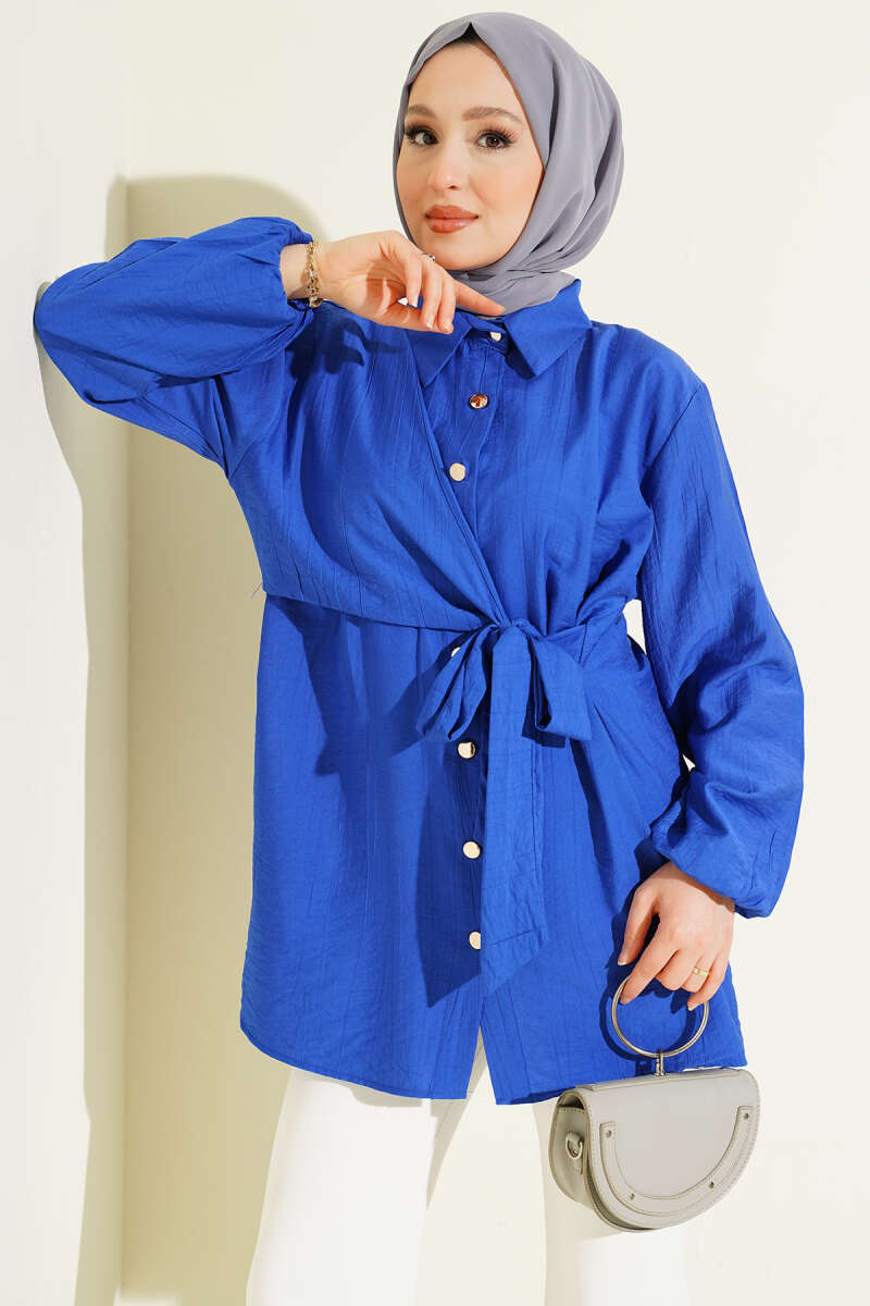 Önü Pile Detaylı Tensel Gömlek Lacivert